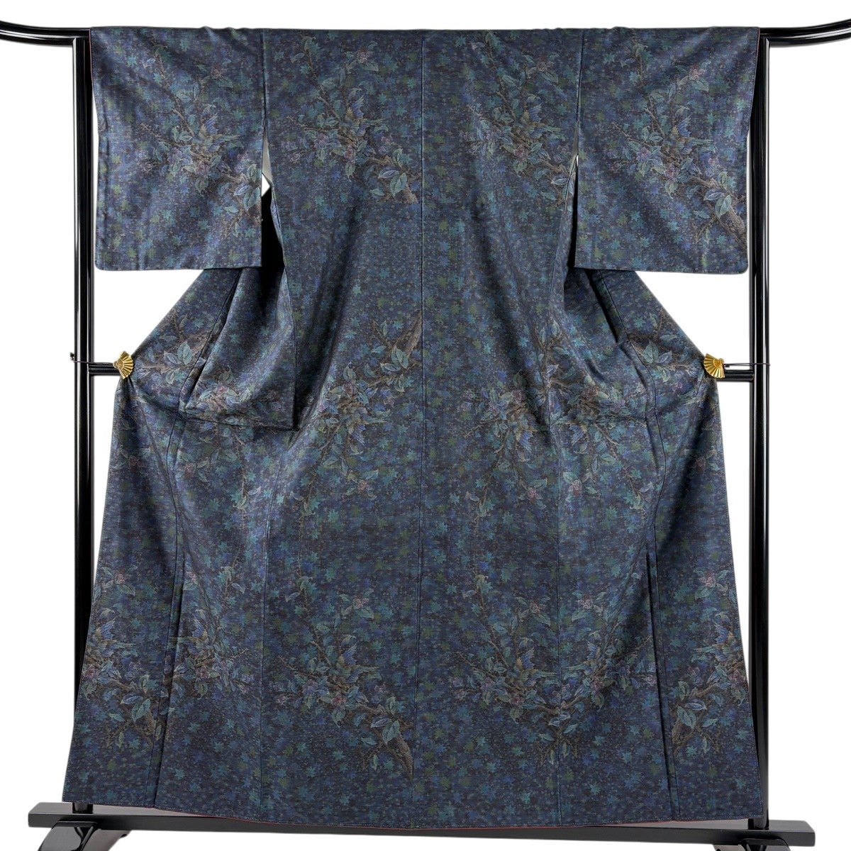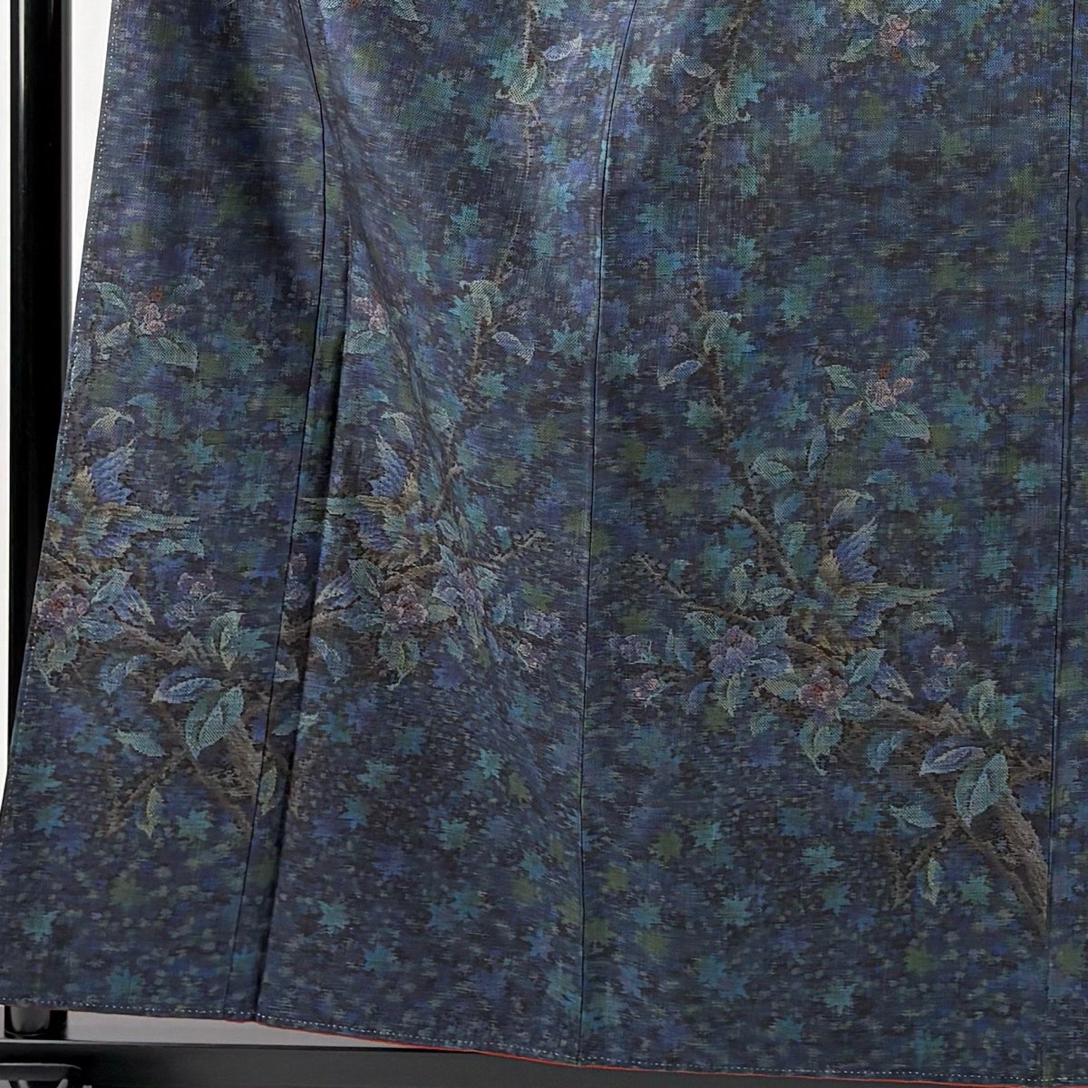30%OFF 【美品】 紬 身丈159.5cm 裄丈64cm M 袷 枝花 鳥 青緑 正絹 名品 K30