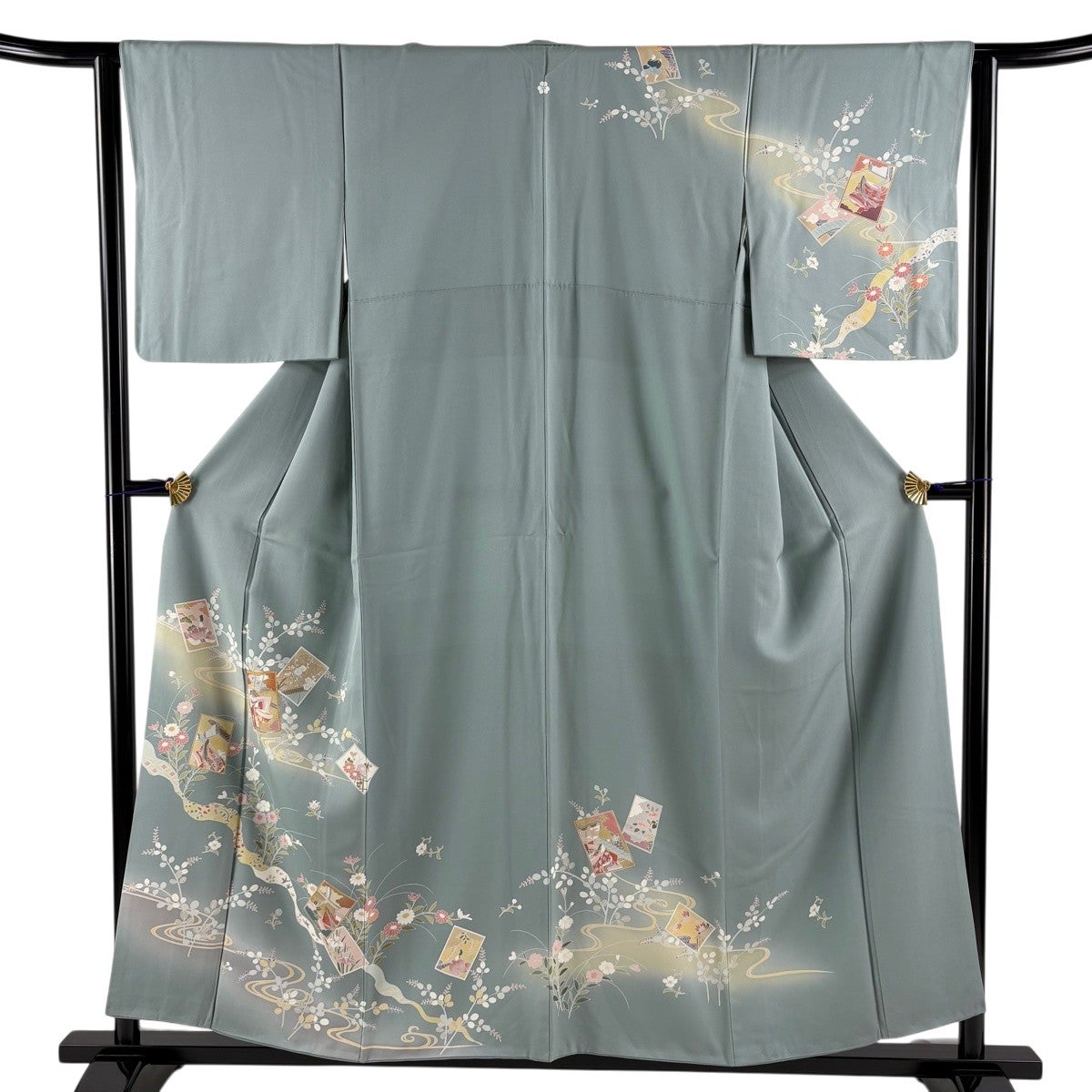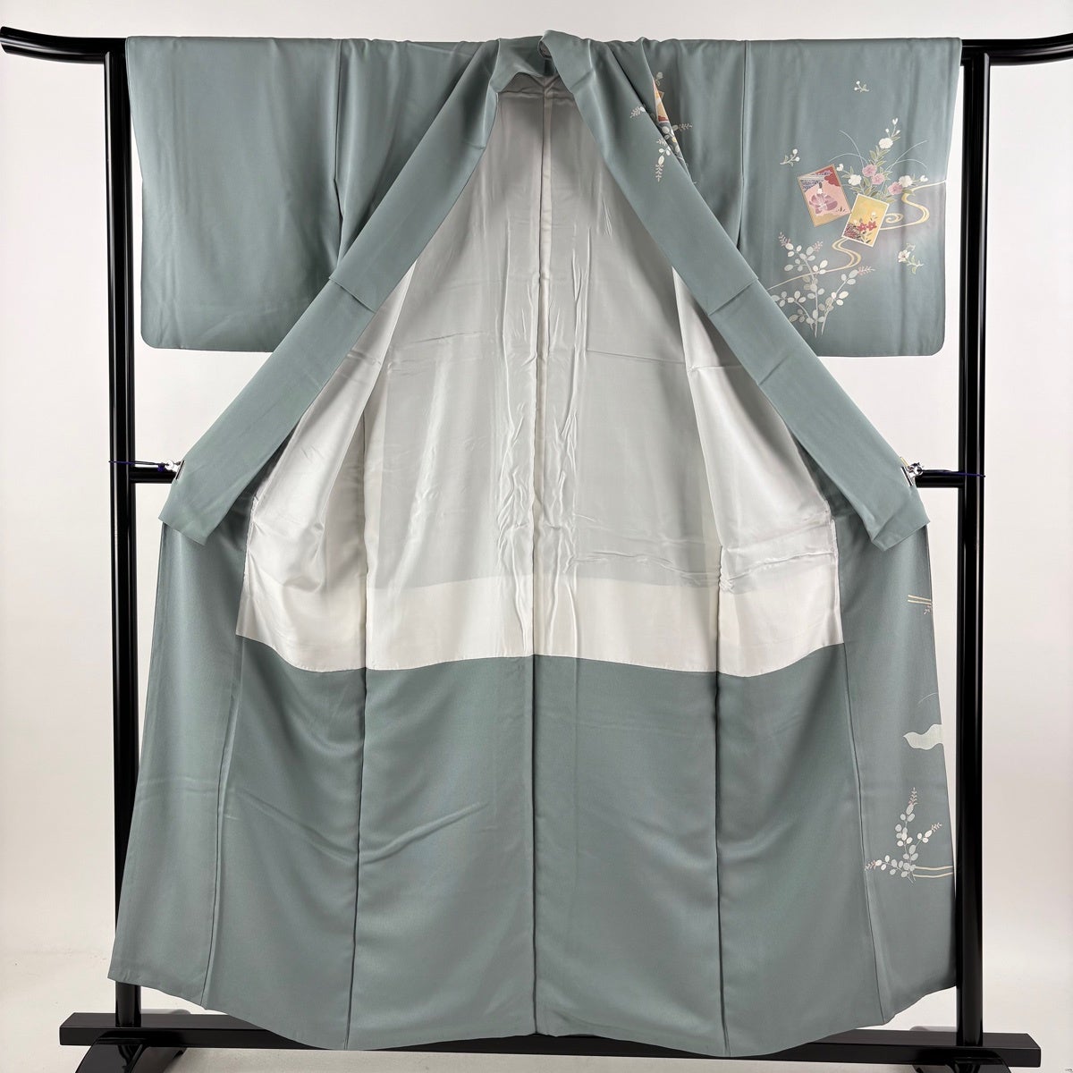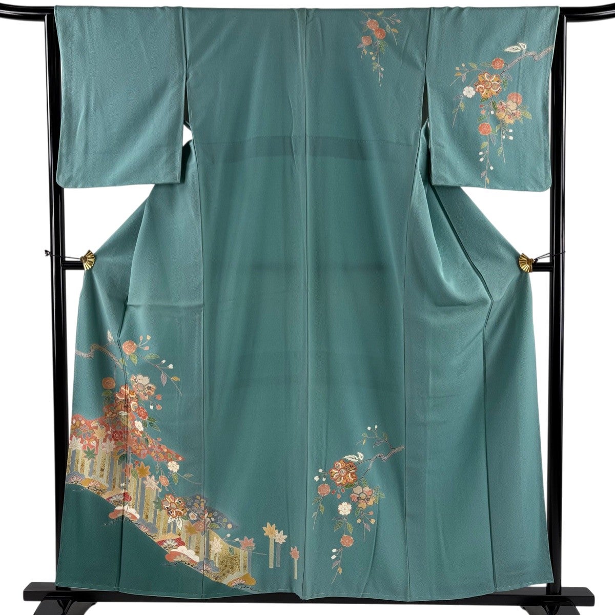50%OFF 付下げ 身丈160cm 裄丈67cm M 袷 橋 笠松 金彩 螺鈿 青緑 正絹 名品 K50
