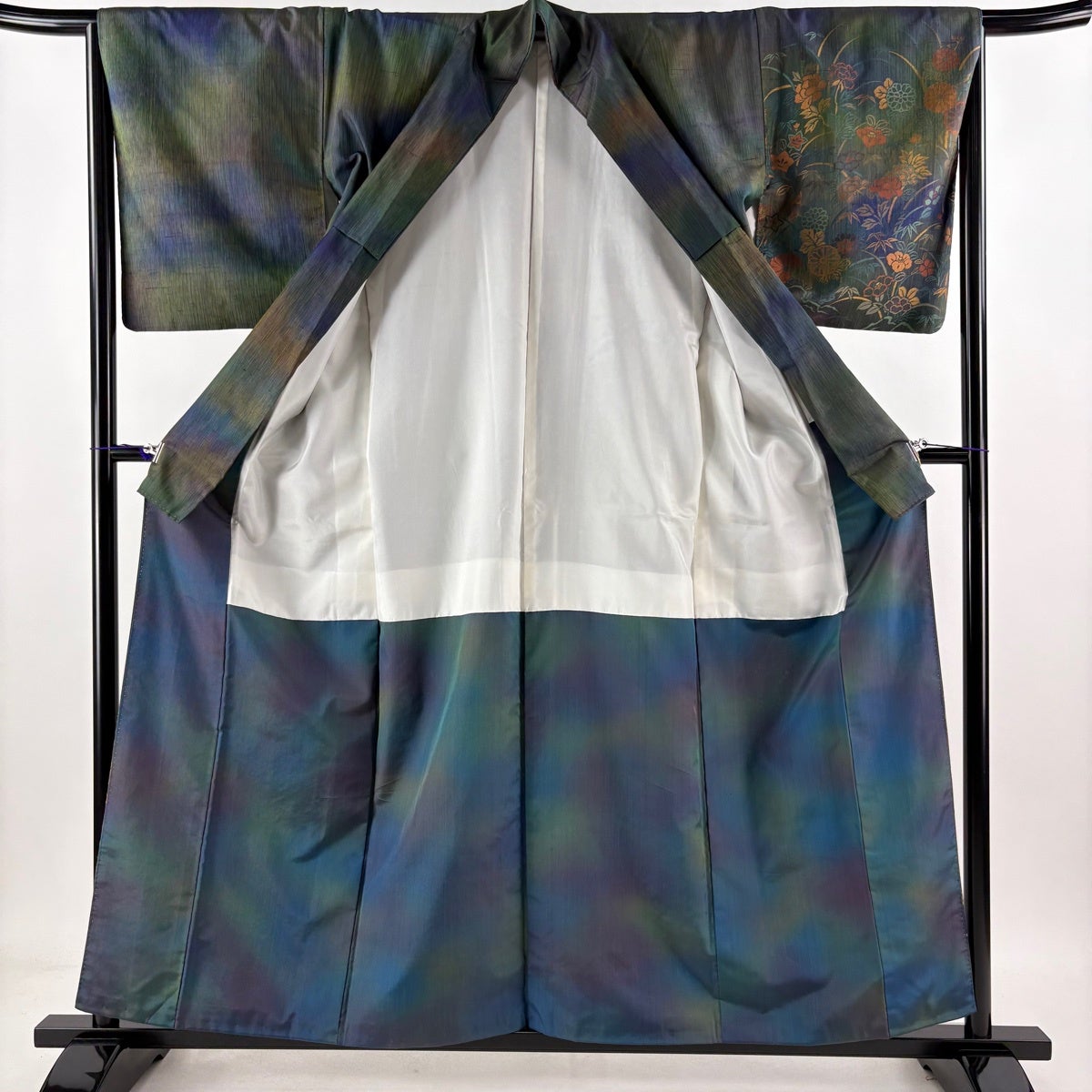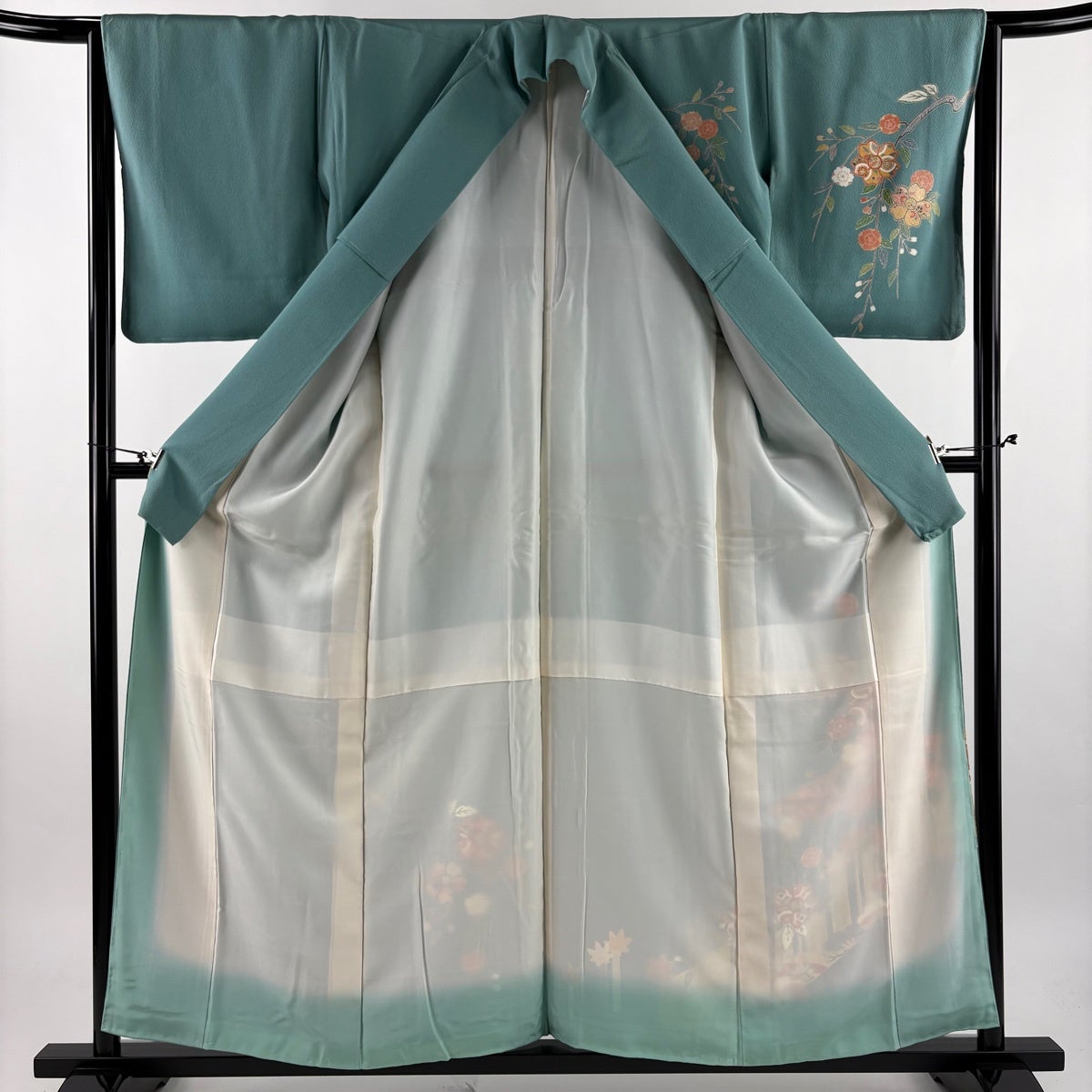 70%OFF 訪問着 身丈171cm 裄丈66.5cm M 袷 菊 梅 金糸 金彩 青緑 正絹 秀品 K70