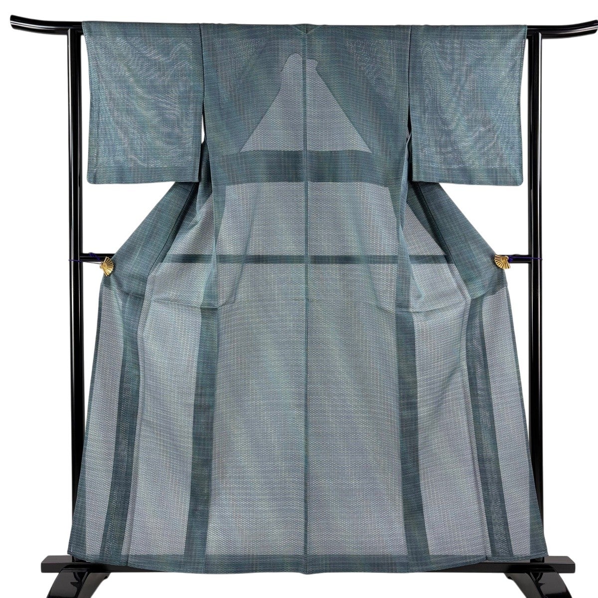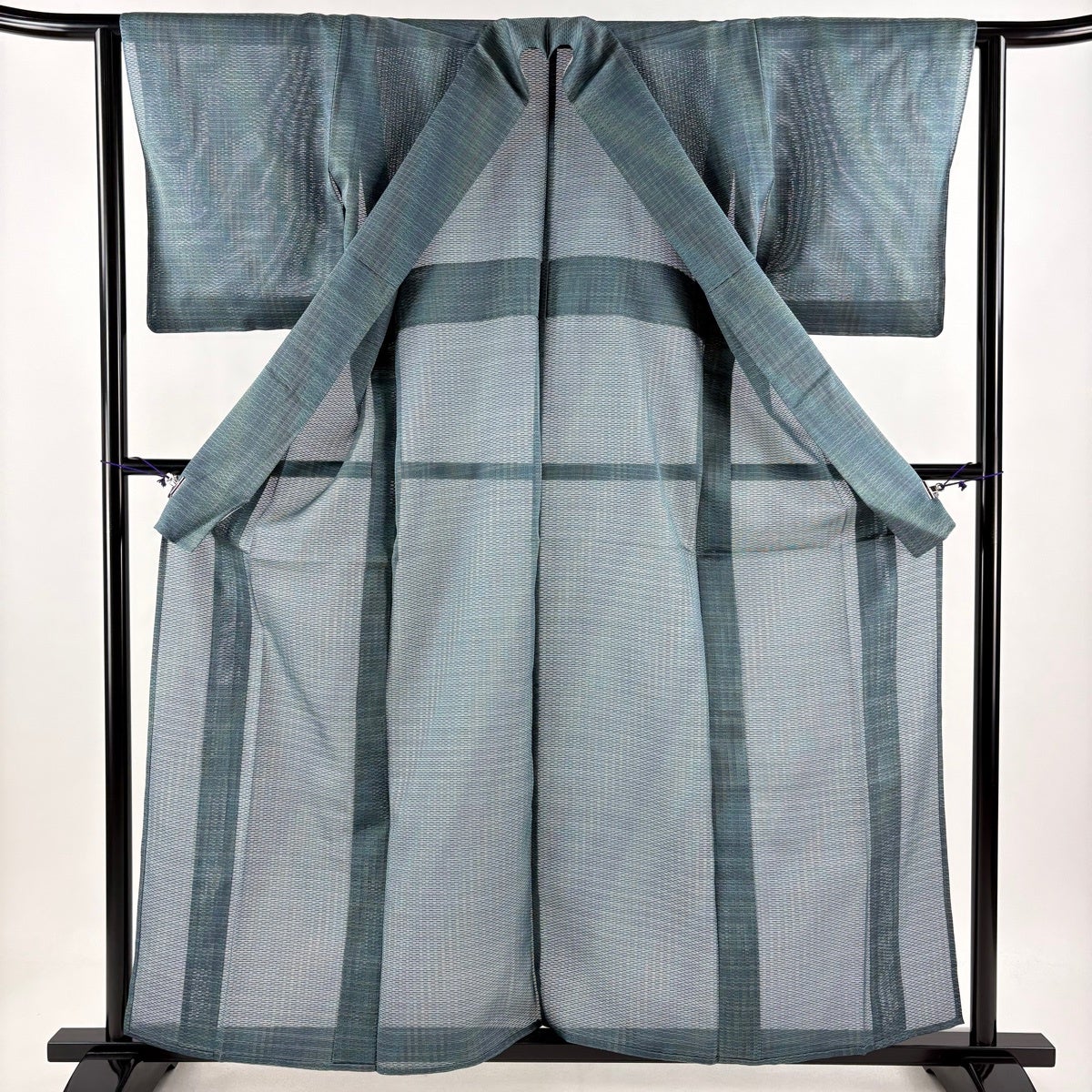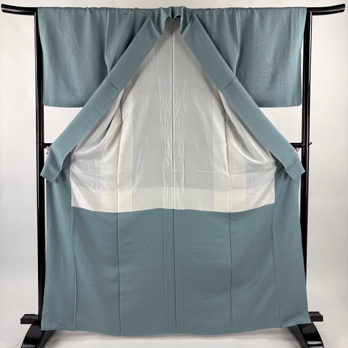 30%OFF 付下げ 身丈150cm 裄丈63cm S 袷 立涌 小梅 青緑 正絹 秀品 一つ紋 K30