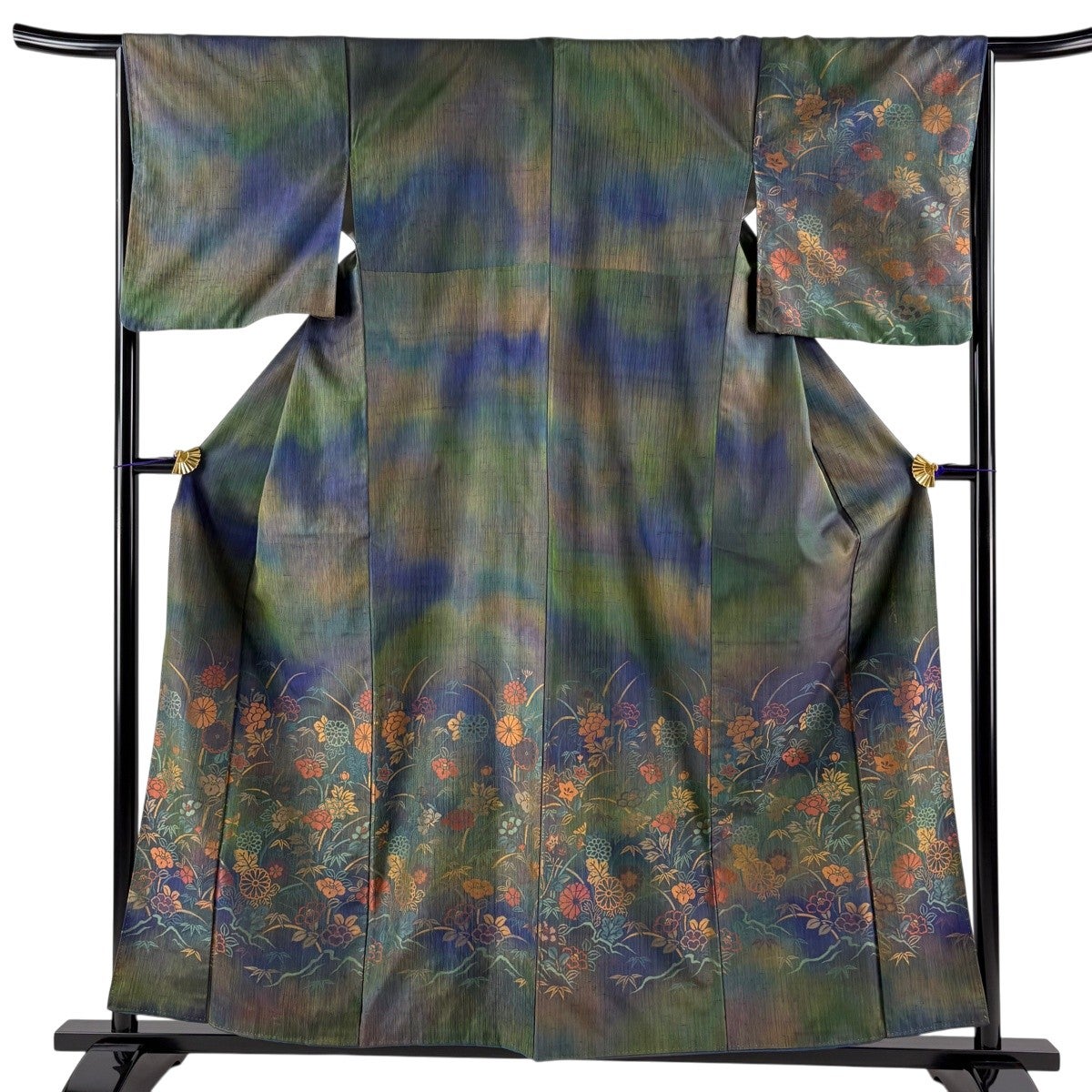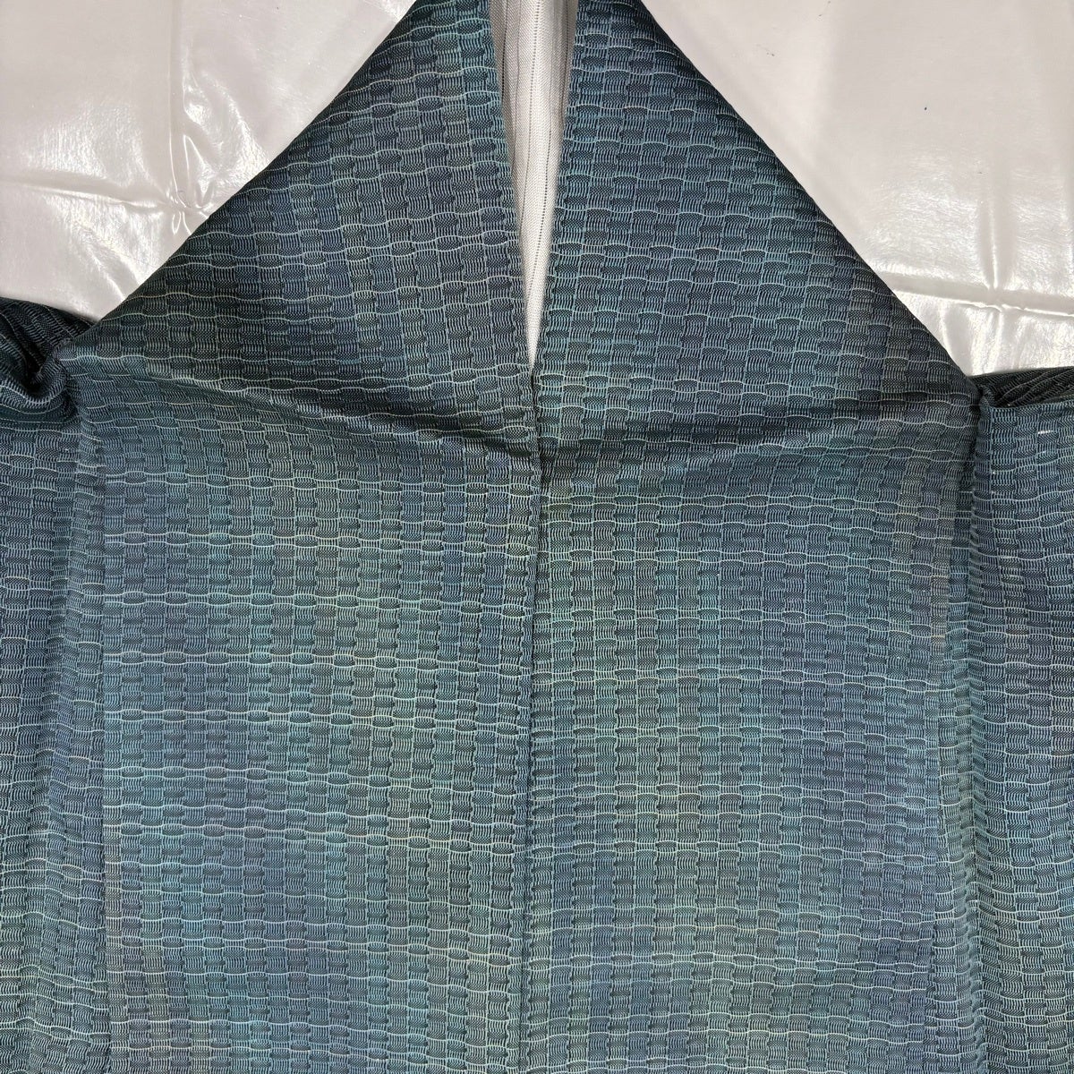40%OFF 小紋 身丈160.5cm 裄丈66cm M 袷 草花 華文 ぼかし 青緑 正絹 逸品 K30