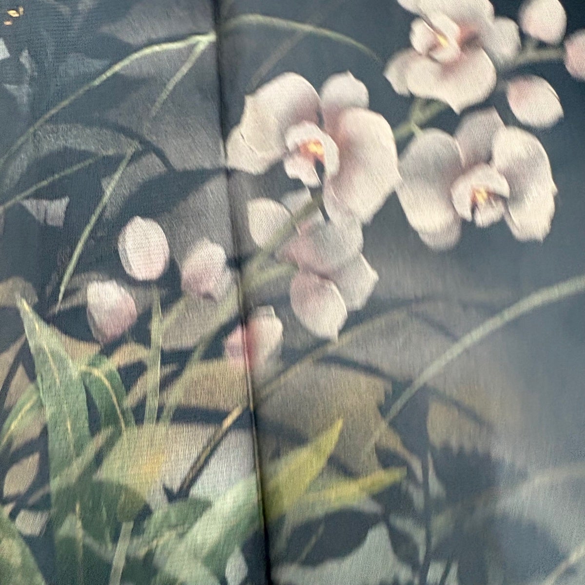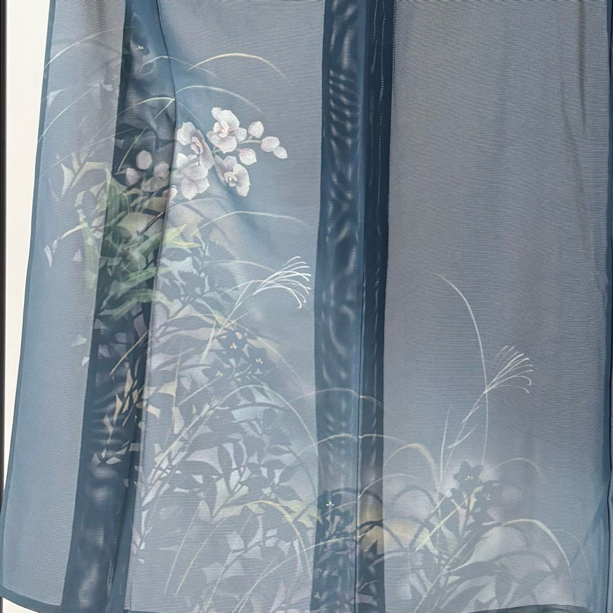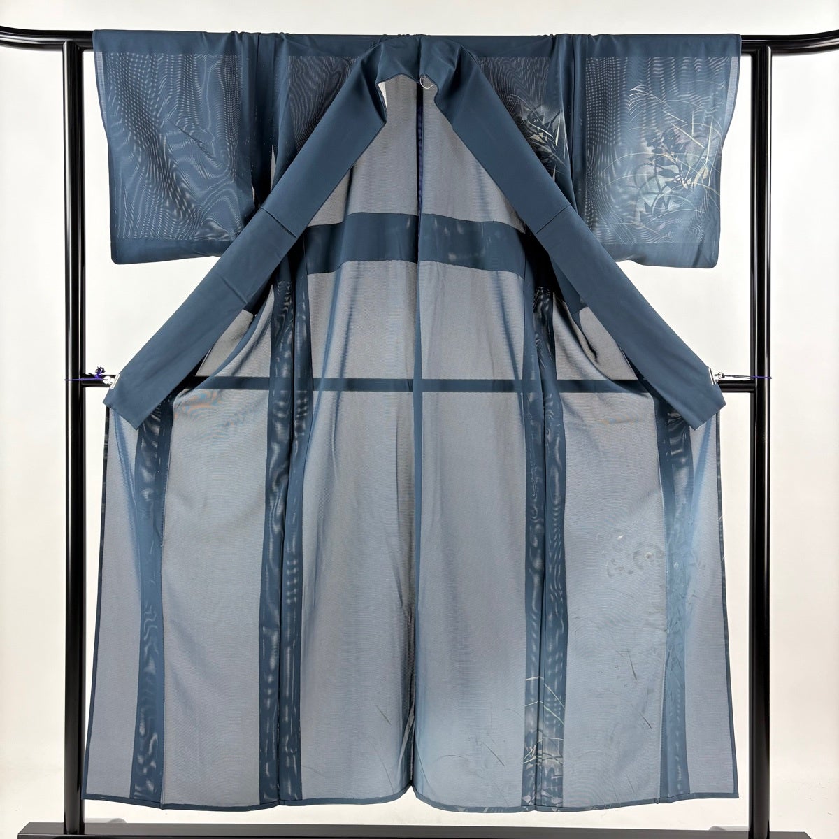 50%OFF 付下げ 身丈160cm 裄丈63cm S 紗袷 草花 シルエット 青緑 正絹 名品 K50