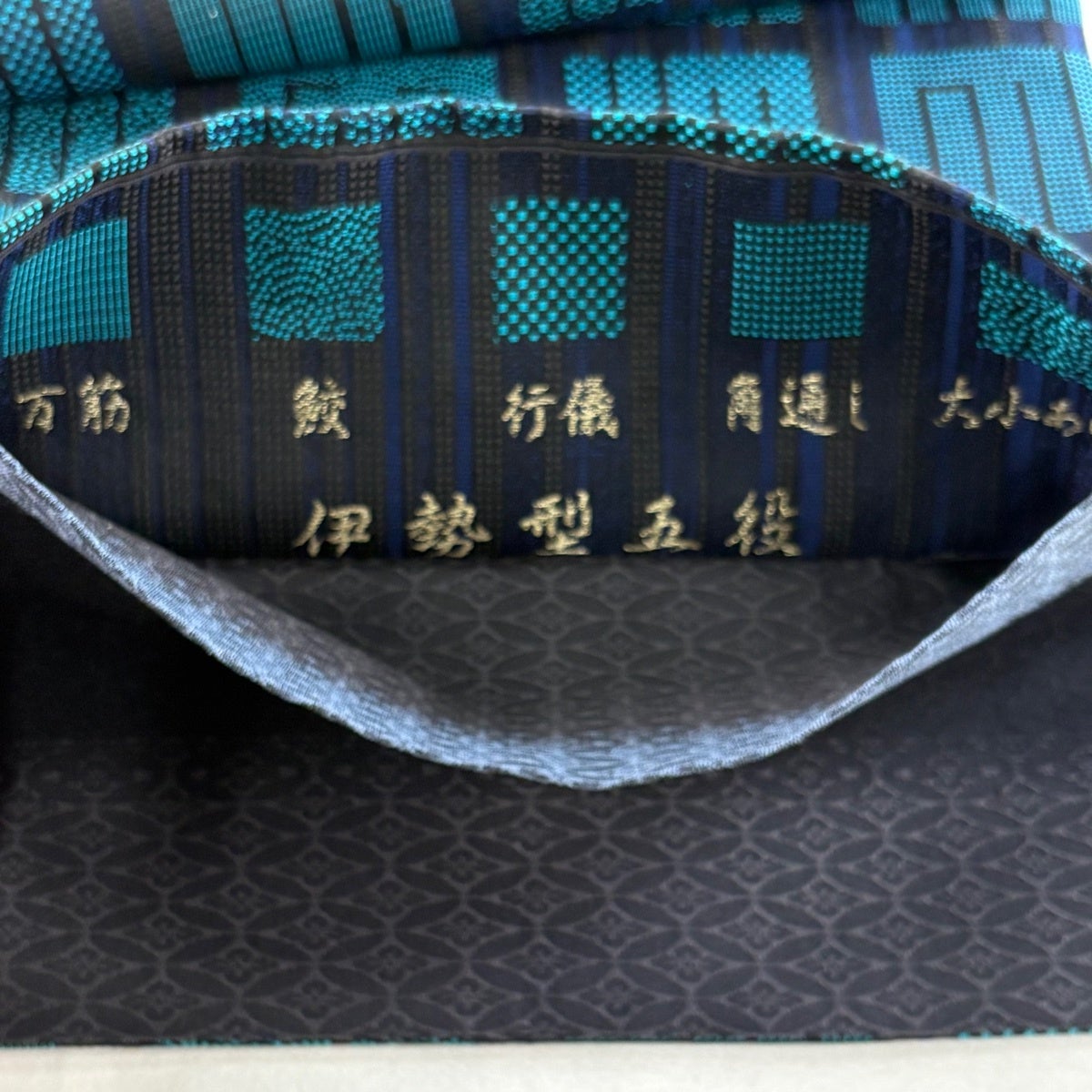 30%OFF 【美品】帯締め 優品 フォーマル 夏物 幾何学模様 金糸 青緑 正絹 和装小物 K30