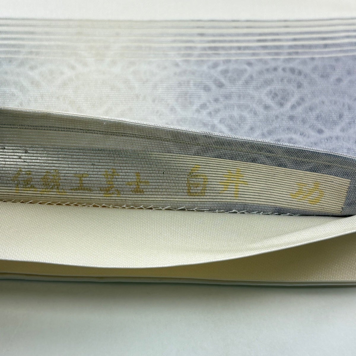 【在庫一掃】 【美品】 名古屋帯 優品 扇 青海波 金糸 刺繍 銀色 正絹