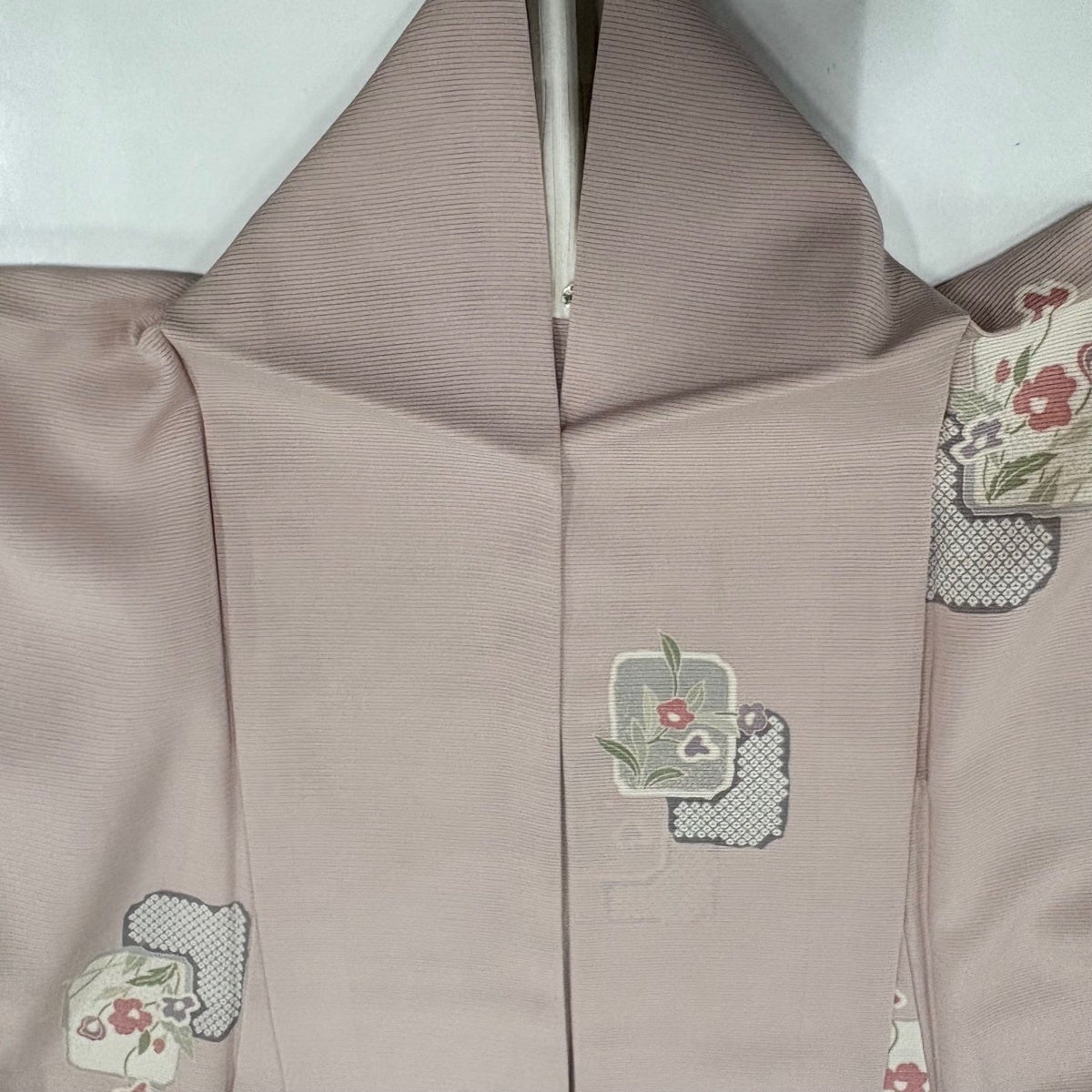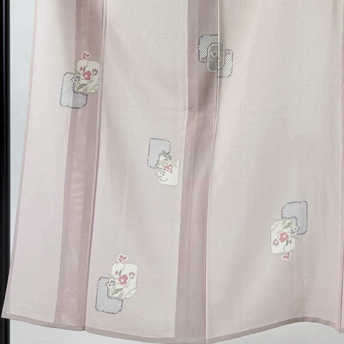 【美品】 小紋 身丈152cm 裄丈63.5cm S 薄物 絽 色紙 草花 薄ピンク 正絹 秀品