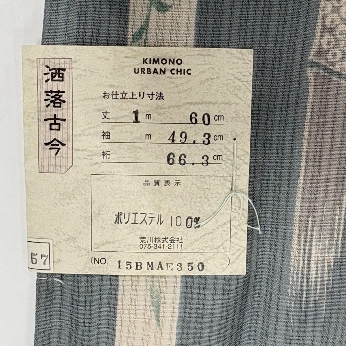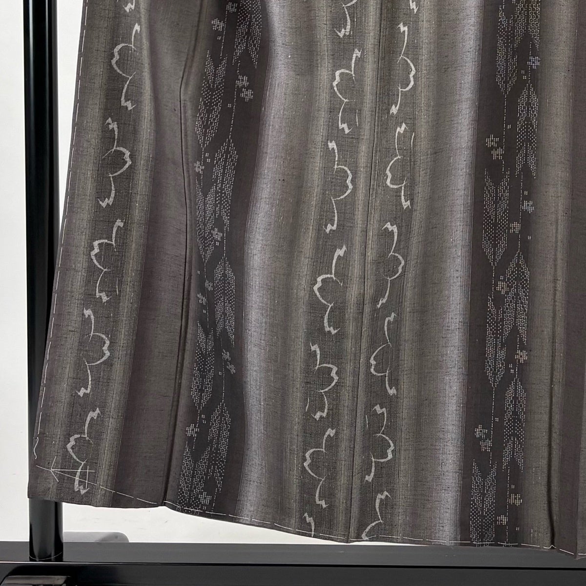 紬 身丈163.5cm 裄丈64cm M 薄物 竹 縞 灰色 正絹 秀品