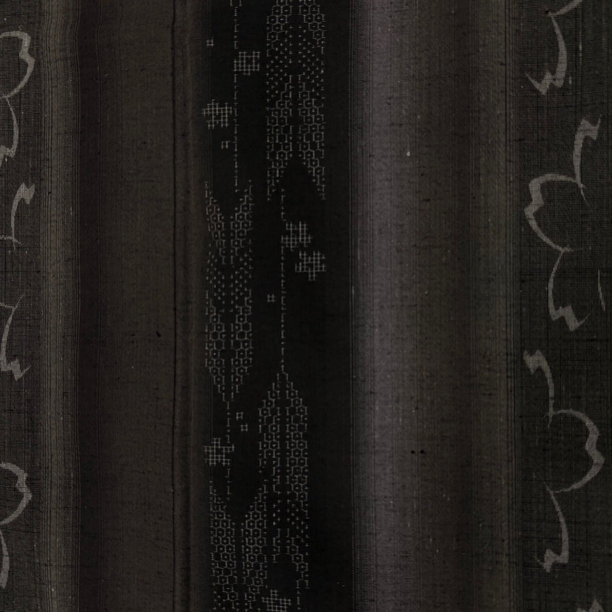 小紋 身丈152cm 裄丈62cm S 薄物 絽 バチ衿 芝 草 黒 正絹 秀品