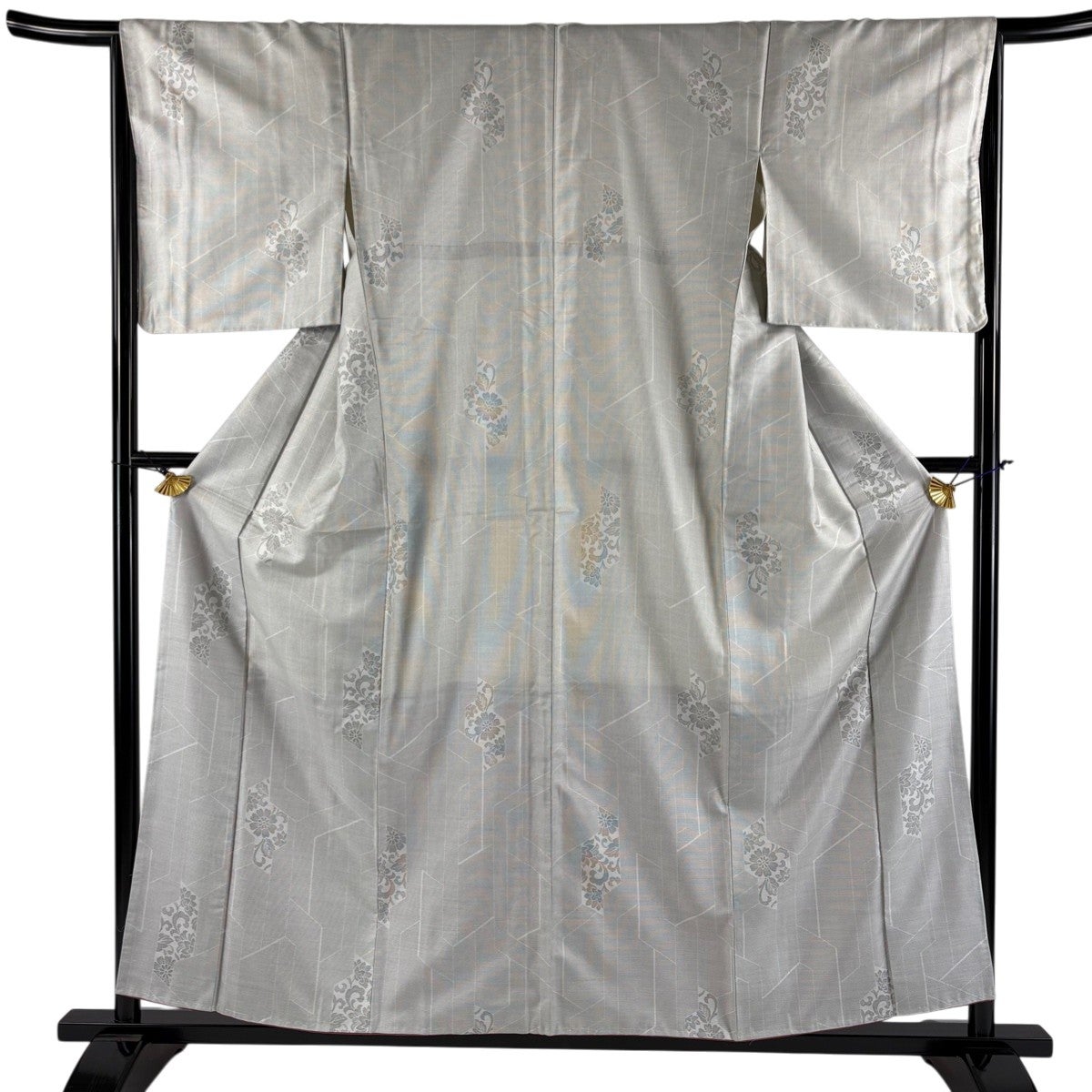 【美品】 小紋 身丈155cm 裄丈66cm M 袷 幾何学 灰色 正絹 優品
