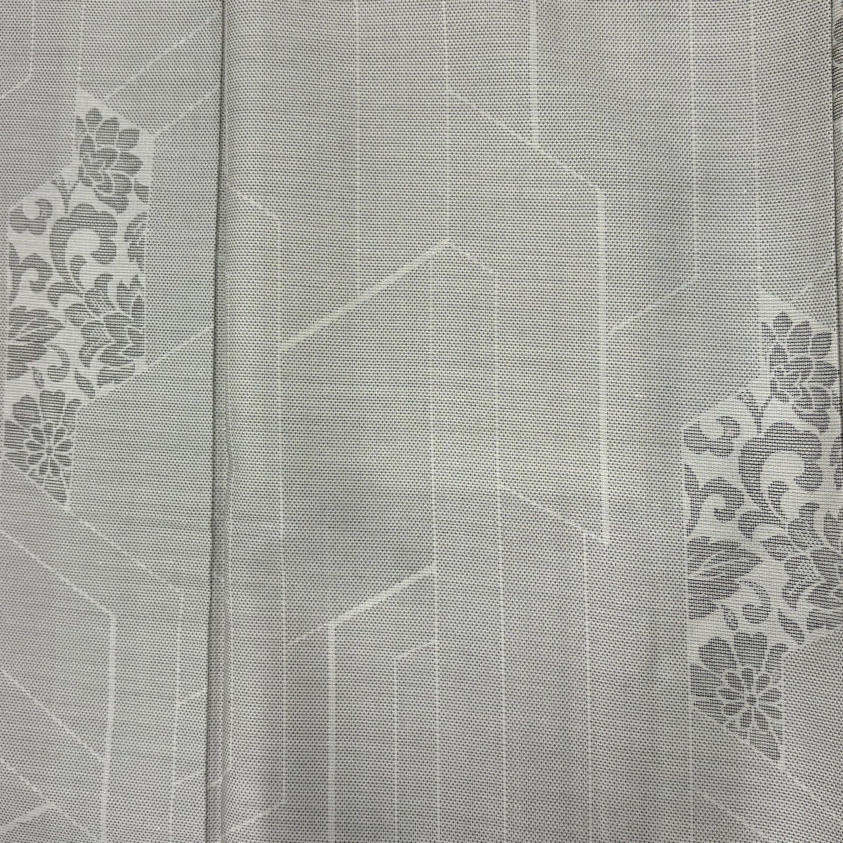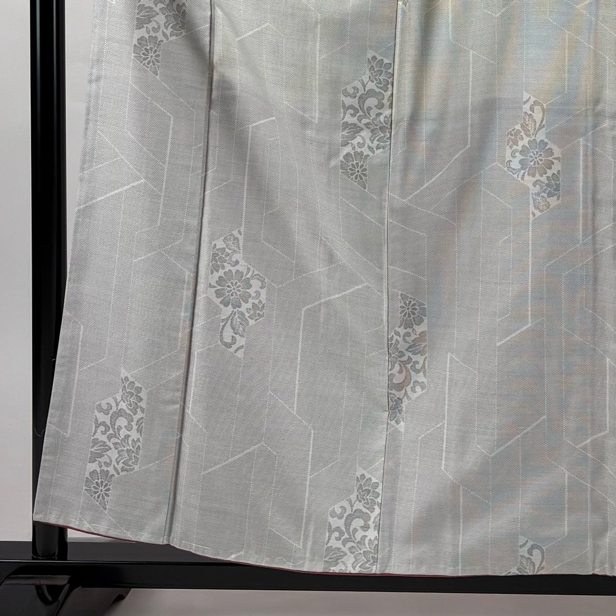 【美品】 紬 身丈158cm 裄丈65.5cm M 袷 花唐草 幾何学 灰色 正絹 秀品