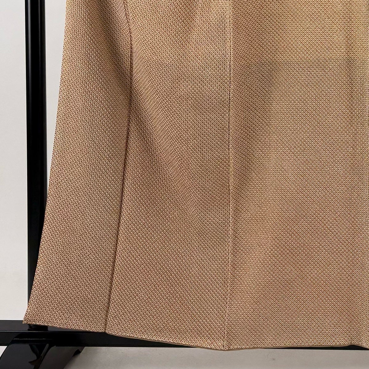 【美品】 お召 身丈158.5cm 裄丈65.5cm M 単衣 本塩沢 やまだ織 証紙あり 格子 薄茶色 正絹 逸品