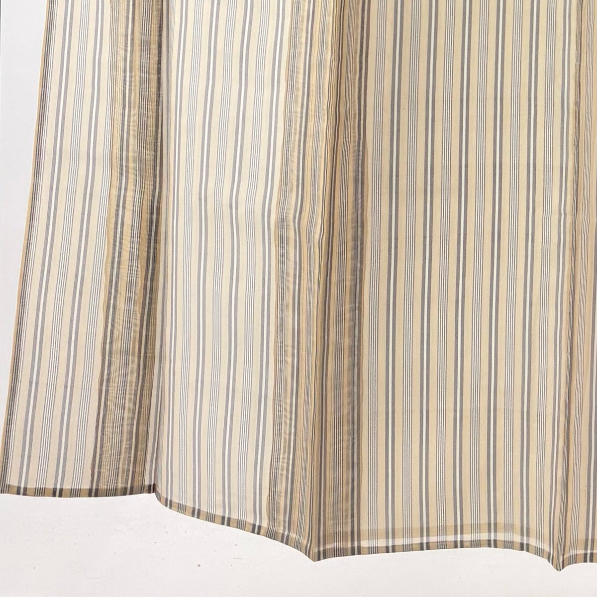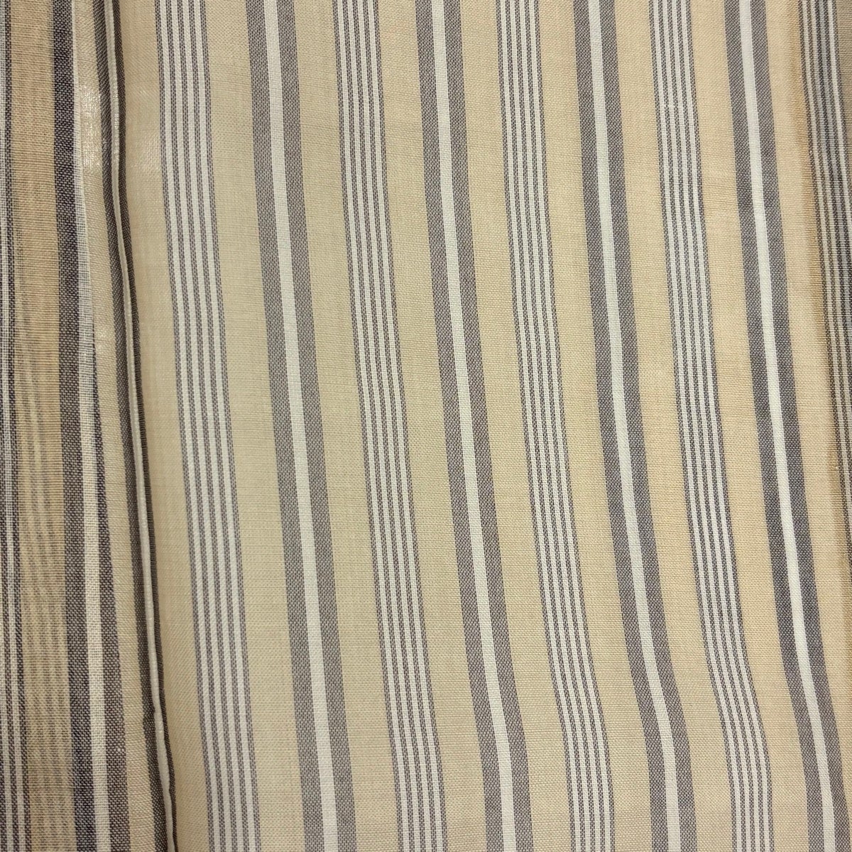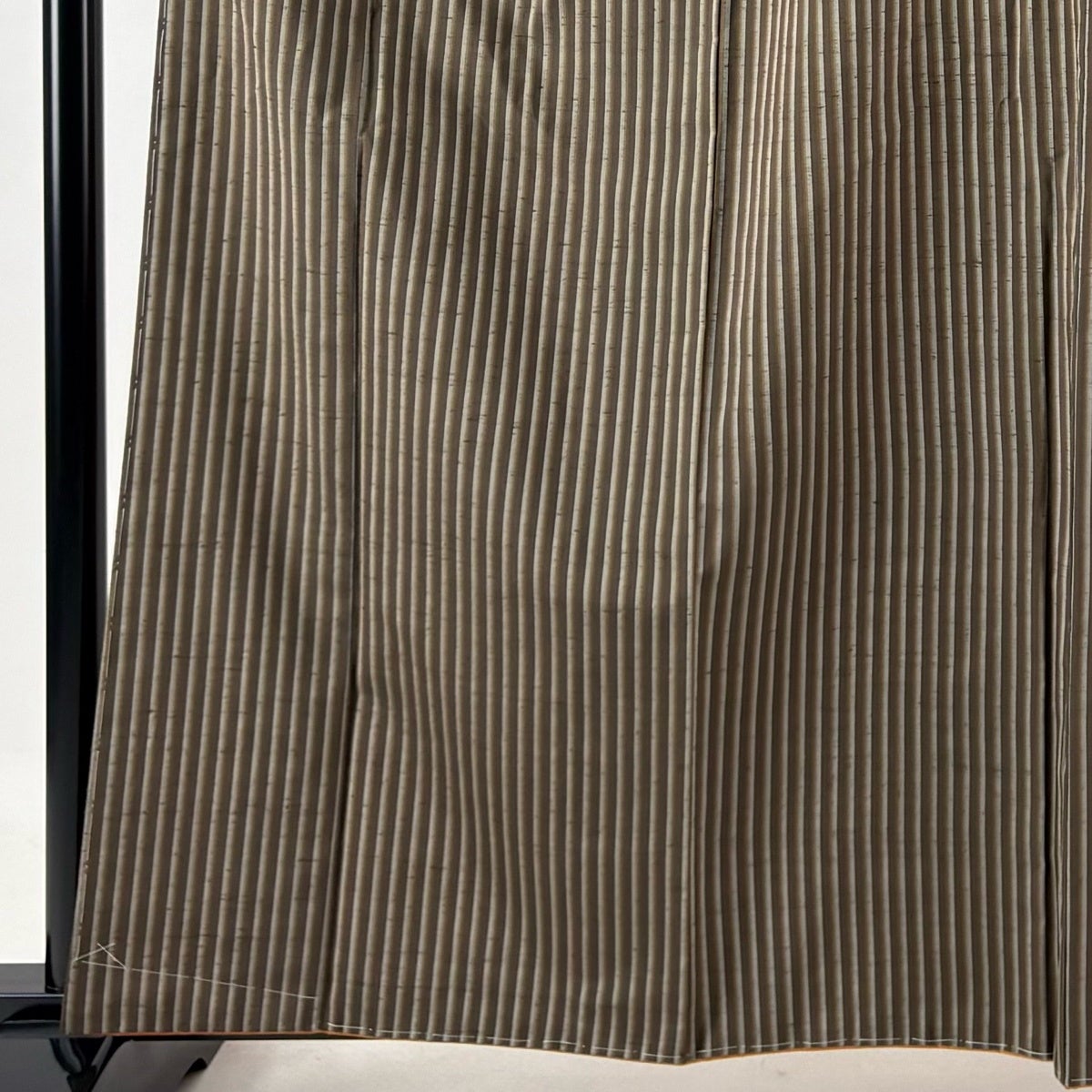 【美品】 紬 身丈150.5cm 裄丈62.5cm S 薄物 夏紬 縦縞 ベージュ 正絹 名品