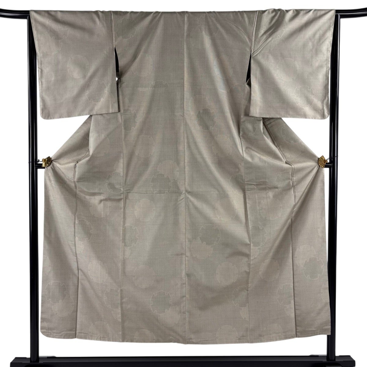 紬 身丈151cm 裄丈65cm M 袷 雪輪 灰茶 正絹 名品