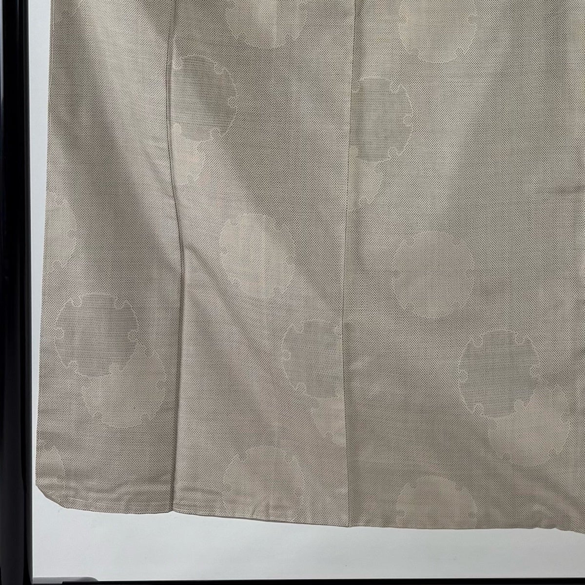 付下げ 身丈166cm 裄丈67cm M 袷 樽本伊勢蔵 落款あり 花唐草 文字文 金銀彩 灰色 正絹 名品