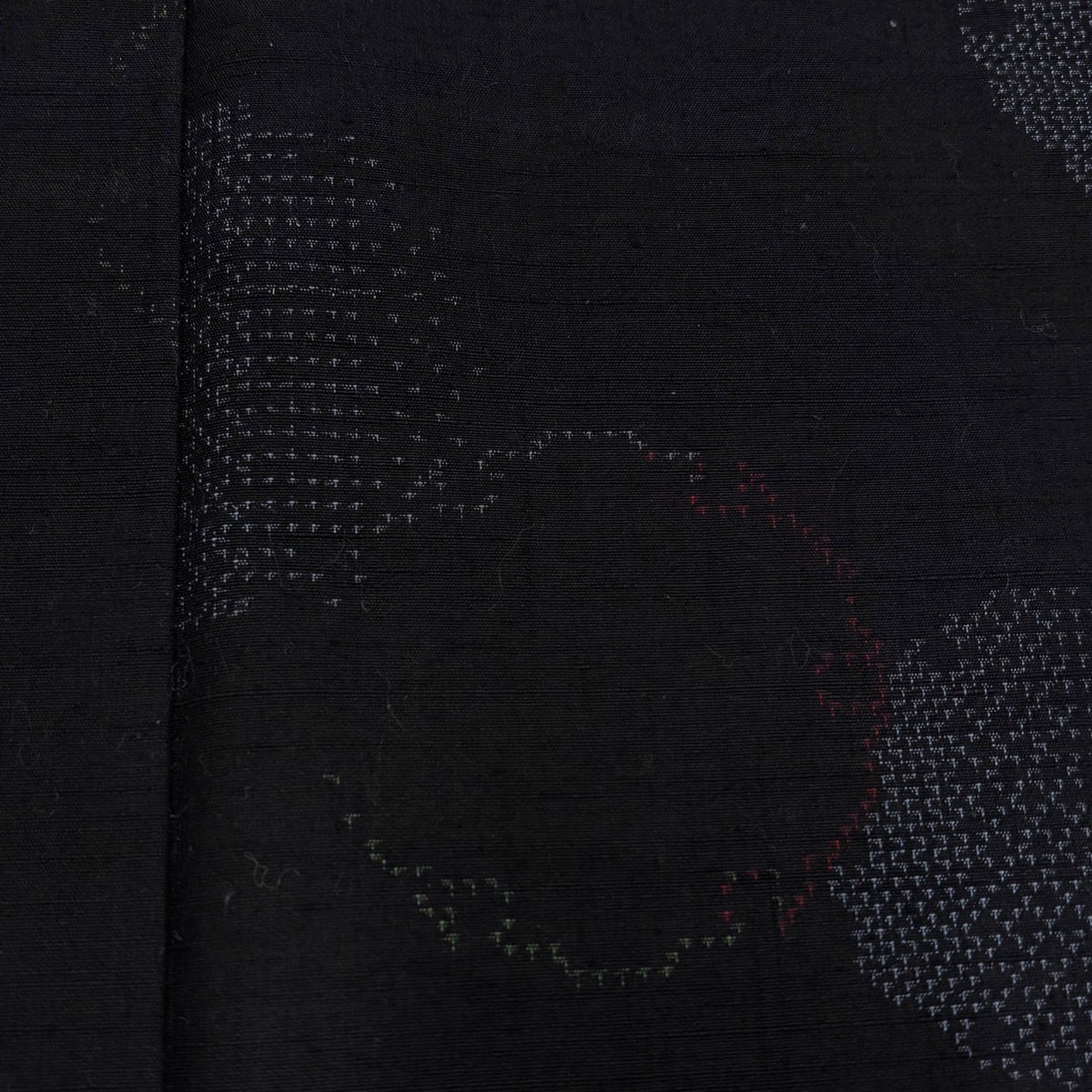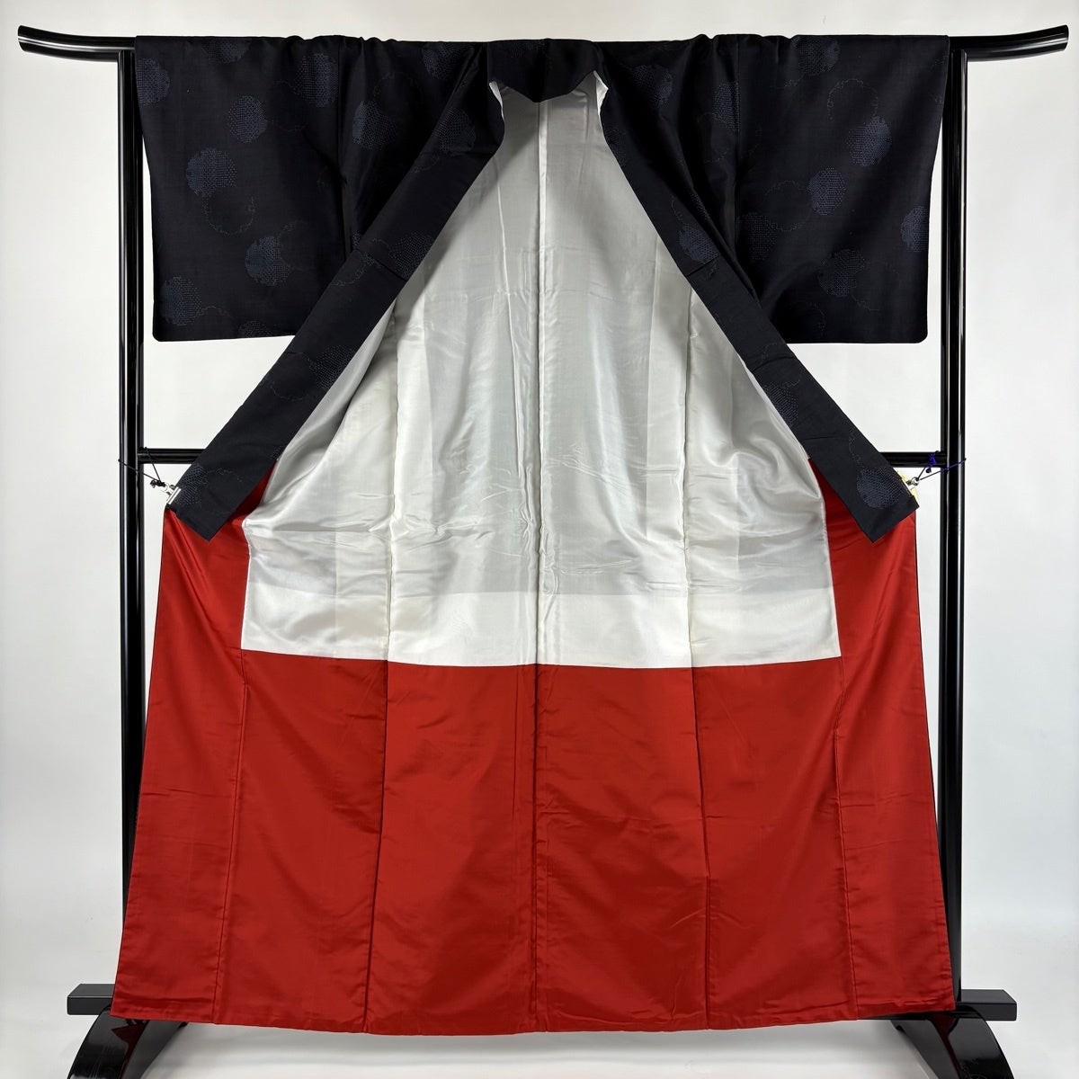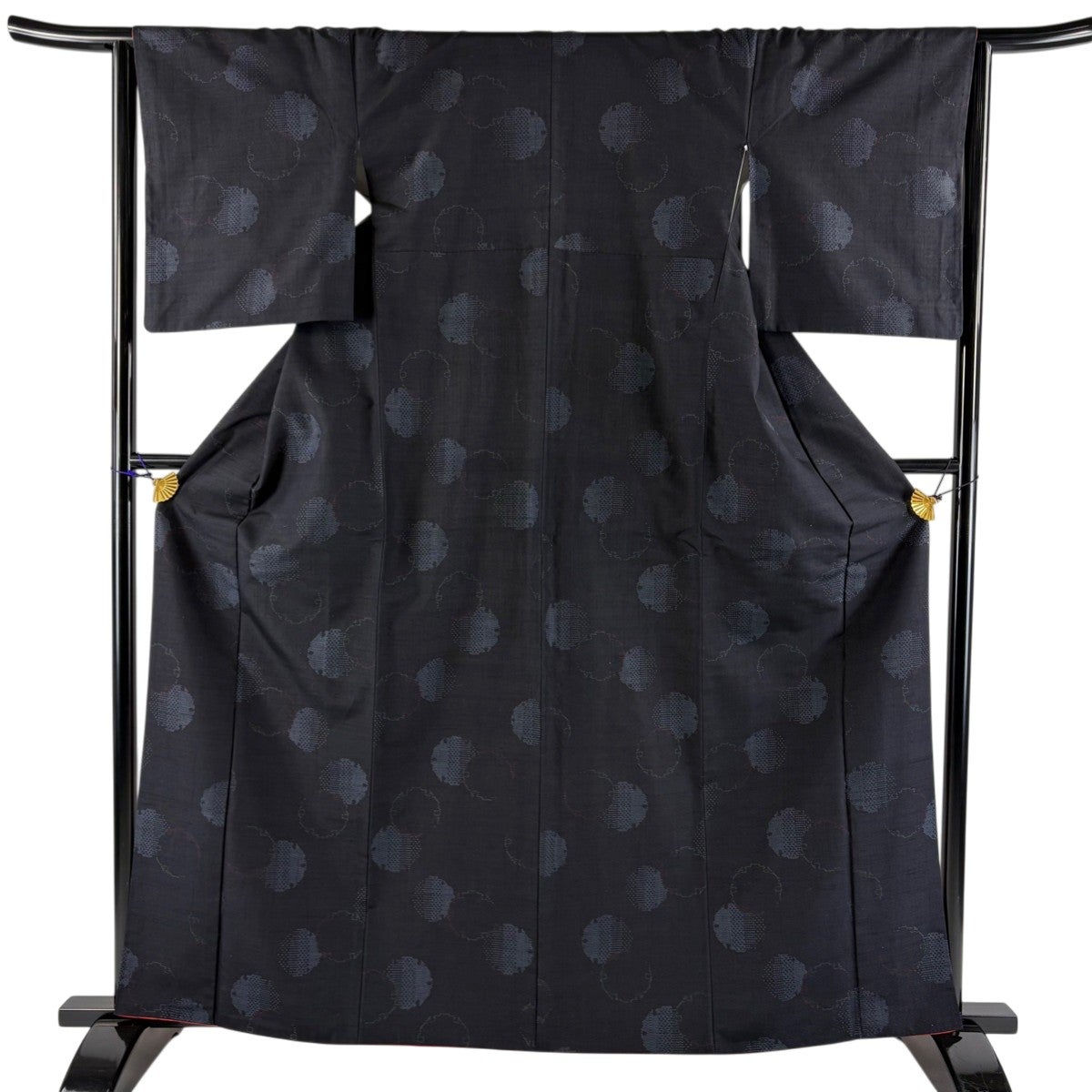 紬 身丈162.5cm 裄丈63.5cm S 袷 雪輪 亀甲絣 黒 正絹 名品
