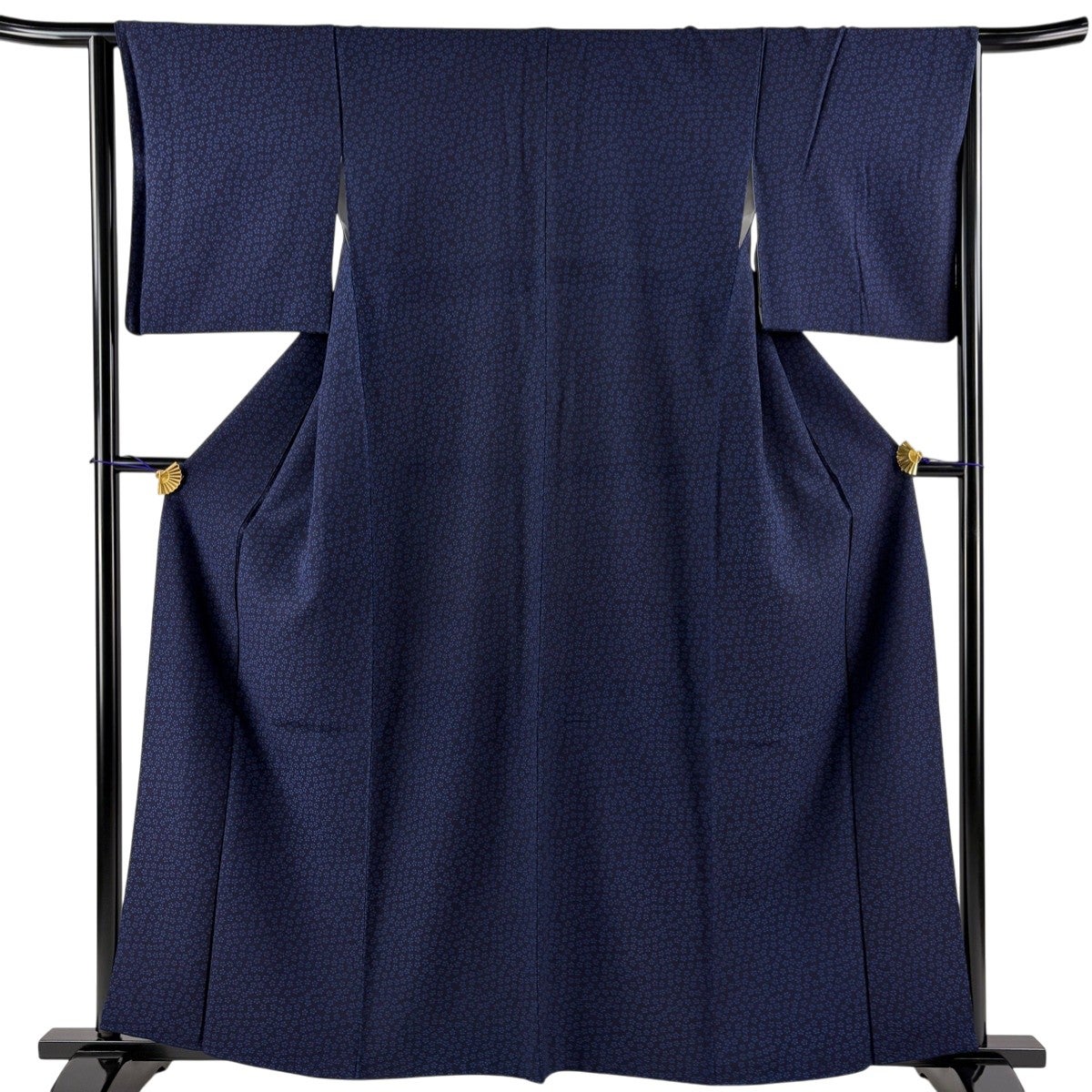江戸小紋 身丈153cm 裄丈63cm S 袷 万筋 青灰色 正絹 名品 一つ紋