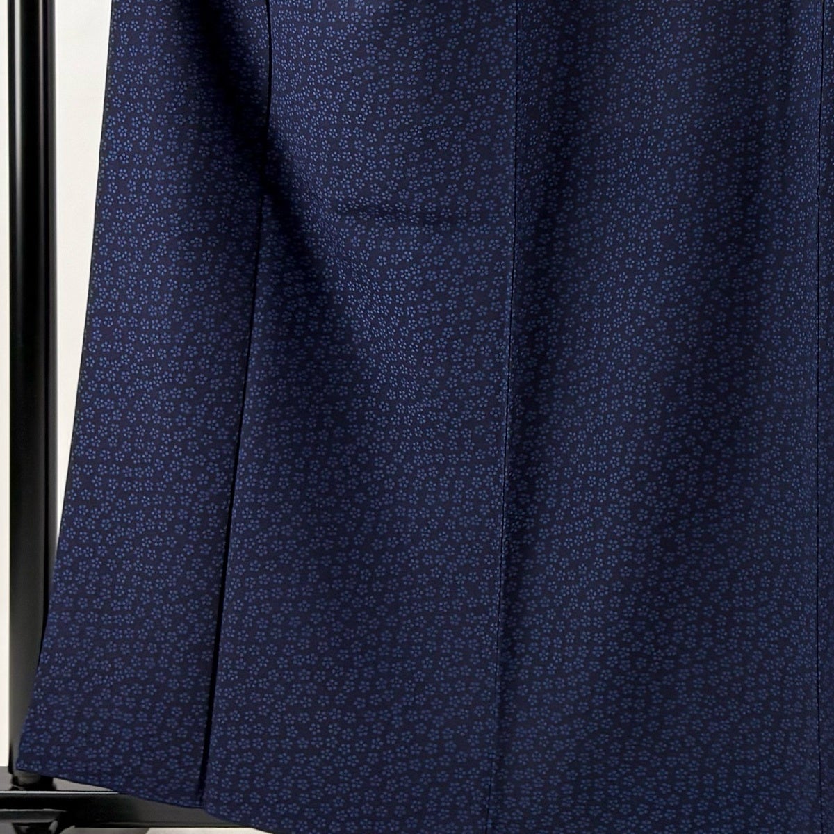 小紋 身丈162cm 裄丈64cm M 薄物 絽 さんび 洗える着物 葉と実 青灰色 化繊 名品