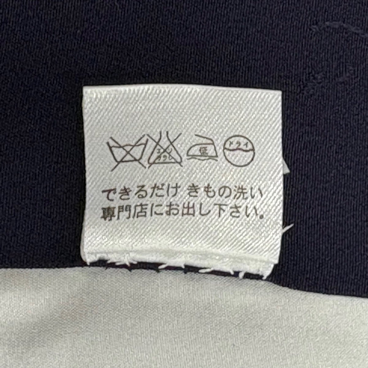 紬 身丈155.5cm 裄丈63.5cm S 袷 置賜紬 証紙あり 段縞模様 幾何学模様 紺色 正絹 名品