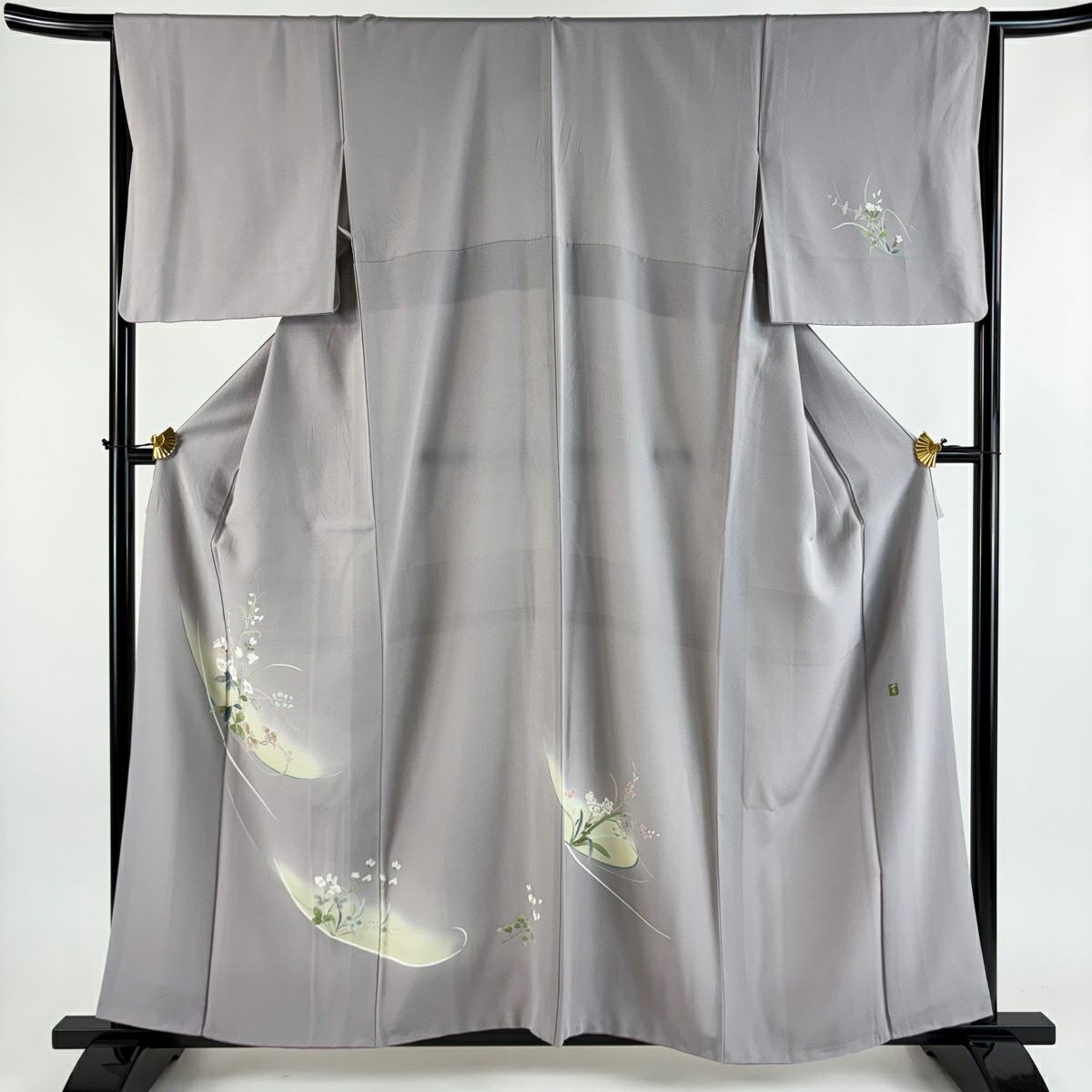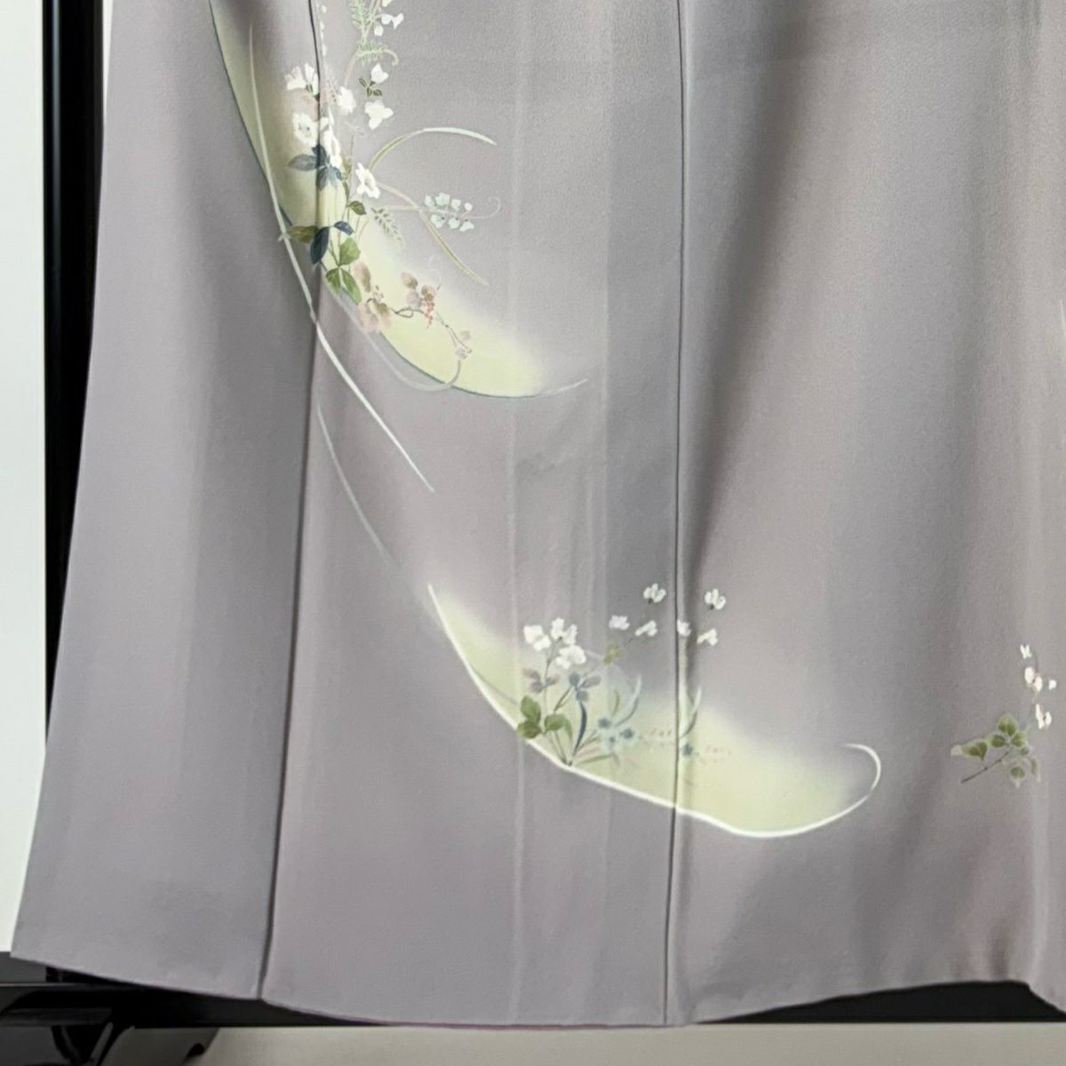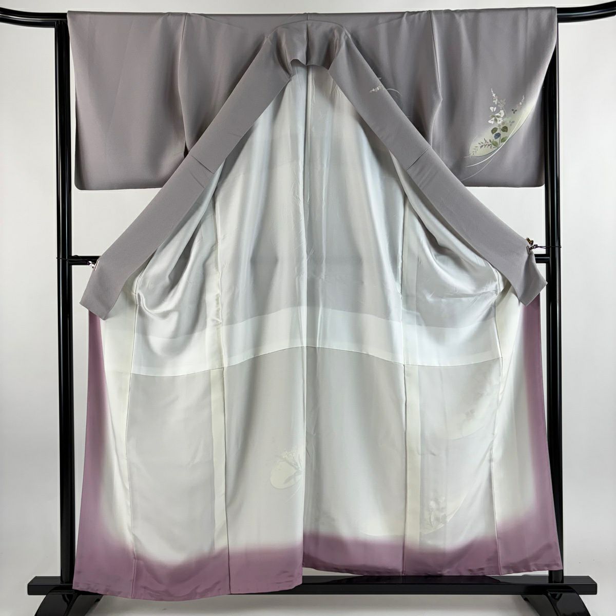 付下げ 身丈158.5cm 裄丈66cm M 袷 落款あり 草花 ぼかし 灰紫 正絹 秀品