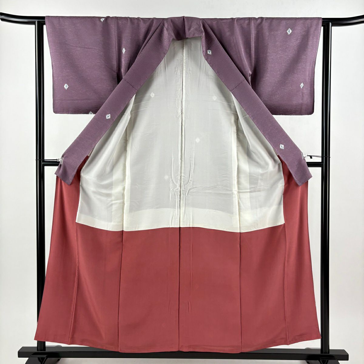 小紋 身丈156cm 裄丈63cm S 袷 菱 地紋 絞り 紫 正絹 優品