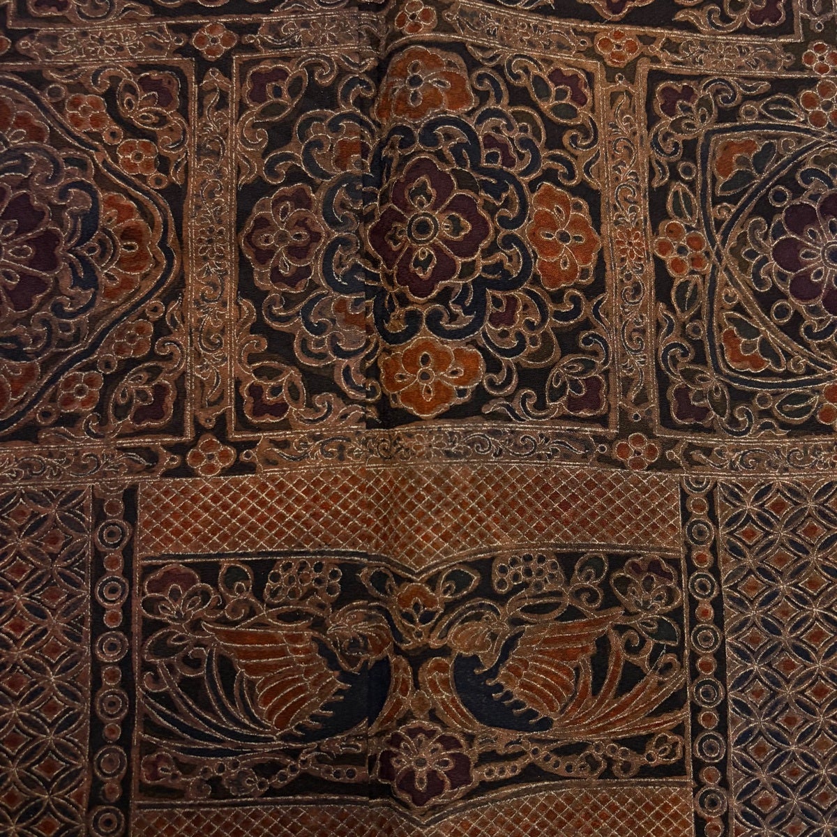 名古屋帯 秀品 人物 花鳥 黄土色 正絹