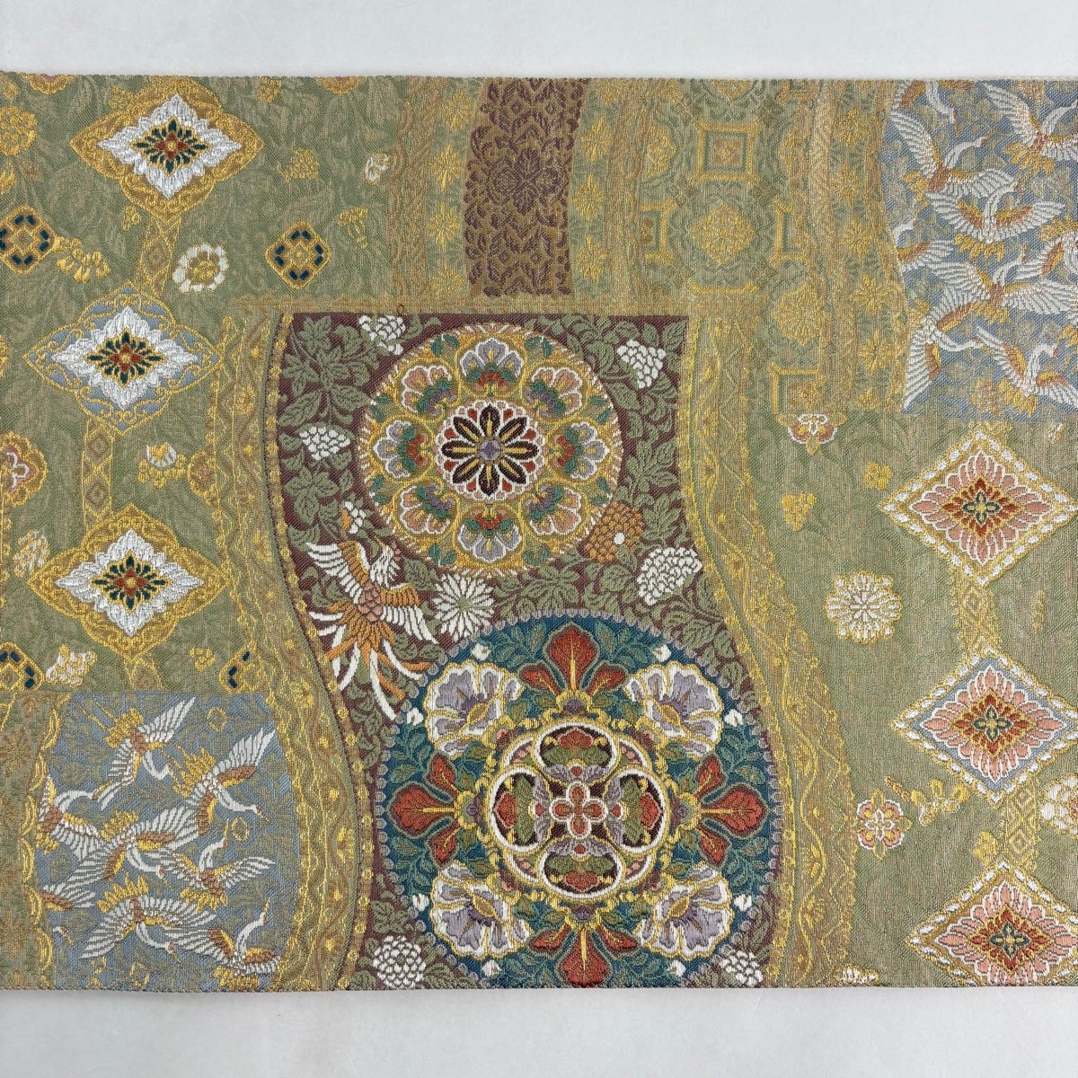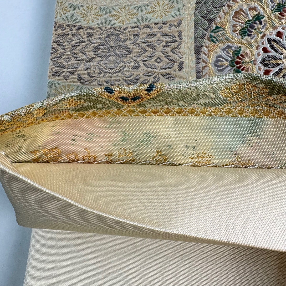 【美品】 袋帯 秀品 色紙 鶴 金銀糸 箔 ベージュ 全通 正絹