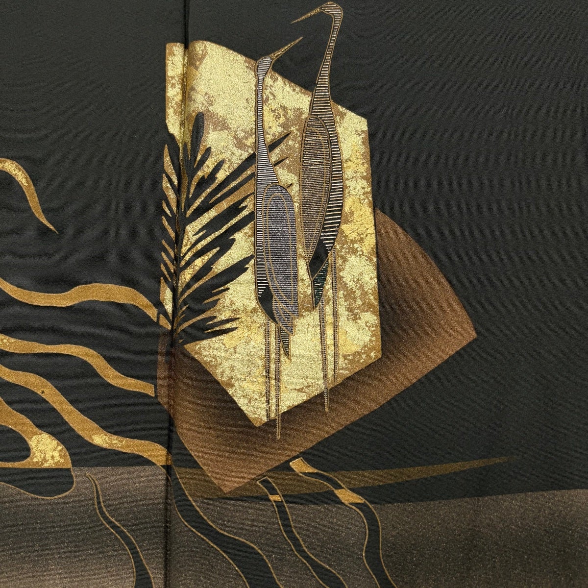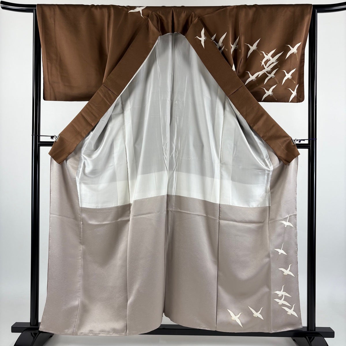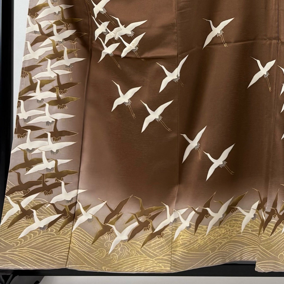 【美品】 付下げ 身丈167cm 裄丈68cm L 袷 鶴 箔散らし 金銀彩 ぼかし 茶色 正絹 秀品