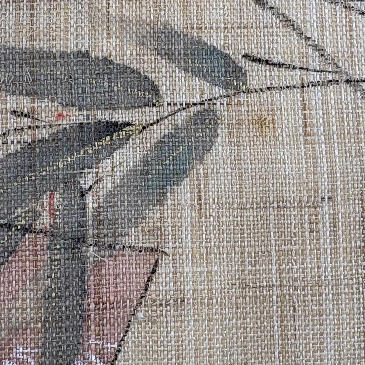 袋帯 秀品 麻の葉 金糸 灰緑 全通 正絹