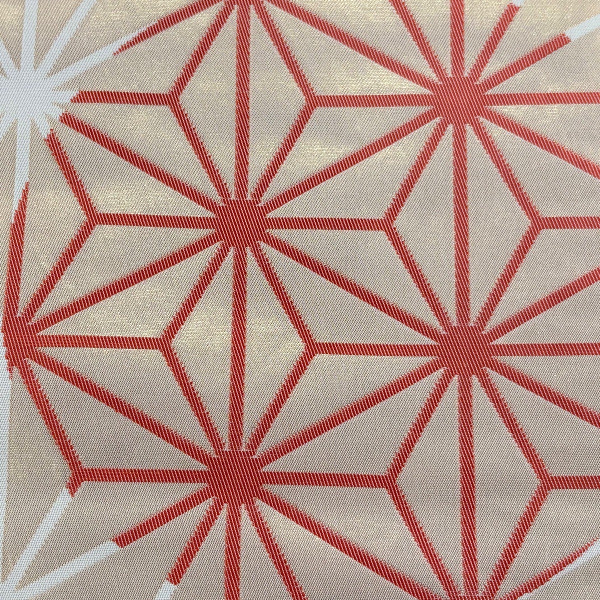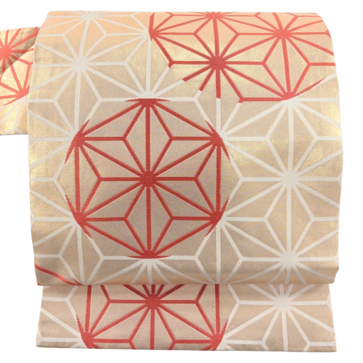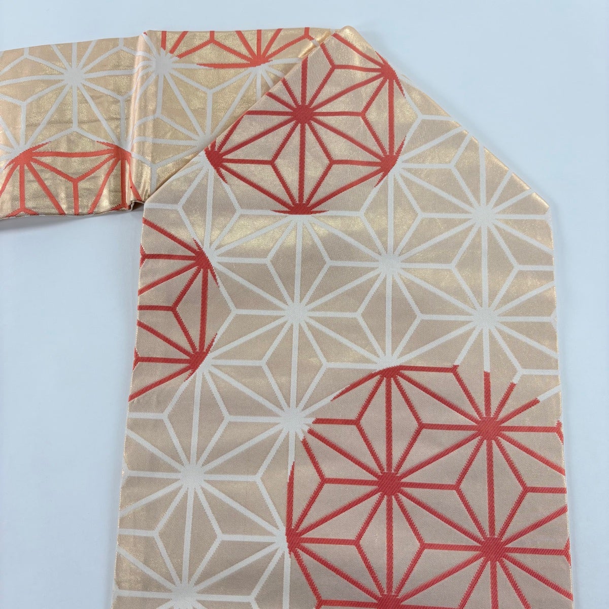 【美品】半幅帯 秀品 証紙あり 本場筑前博多織 麻の葉 七宝 白 正絹