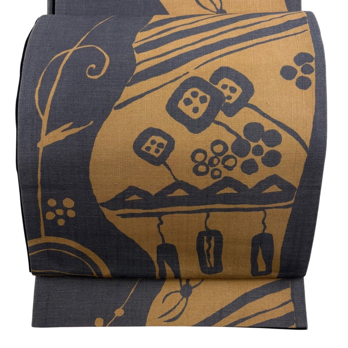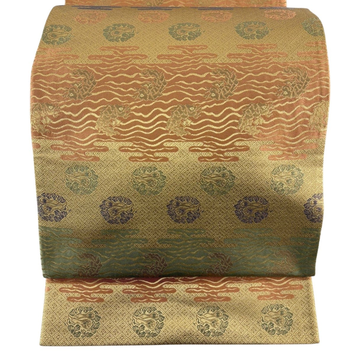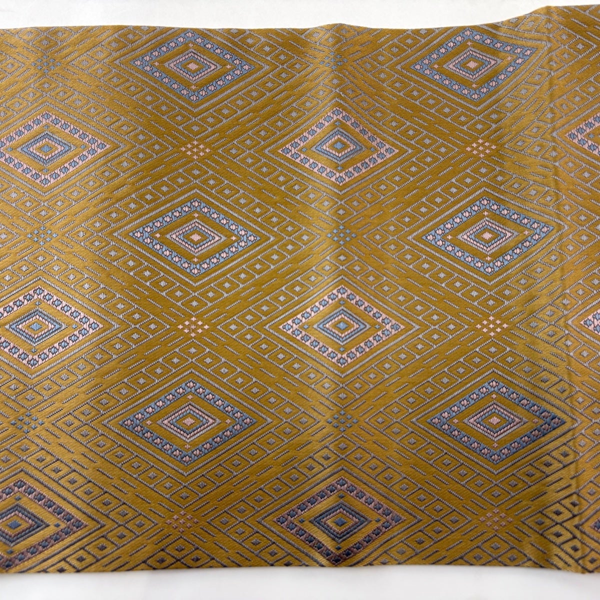 70%OFF 袋帯 秀品 幾何学模様 黄土色 六通 正絹 K70