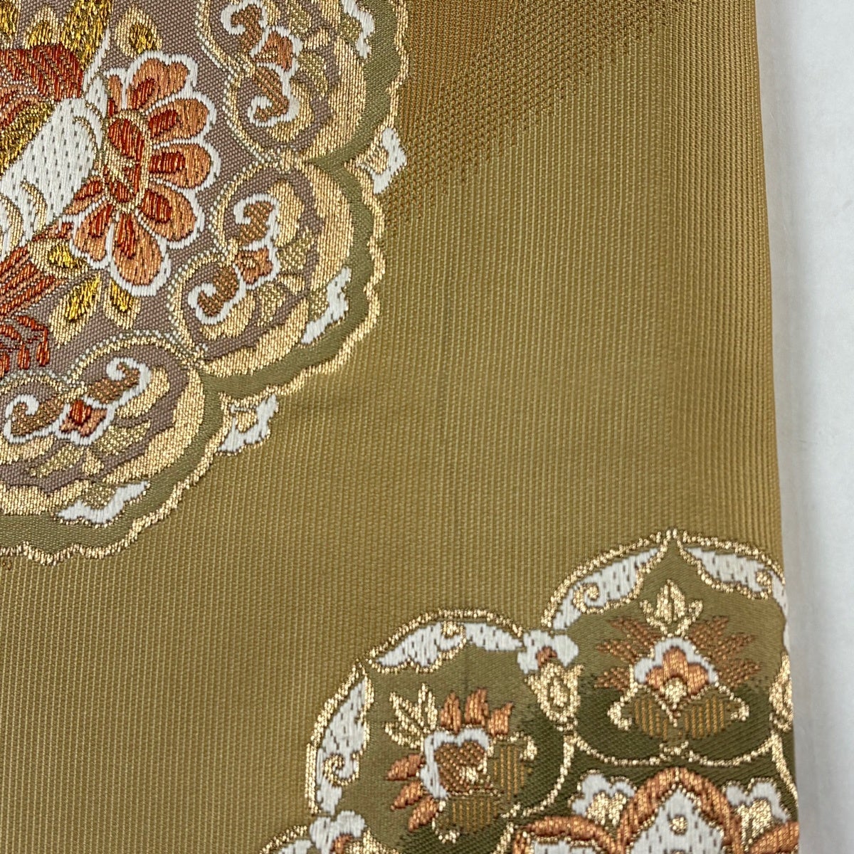 50%OFF 名古屋帯 秀品 花 向かい鳥 黄土色 正絹 K50
