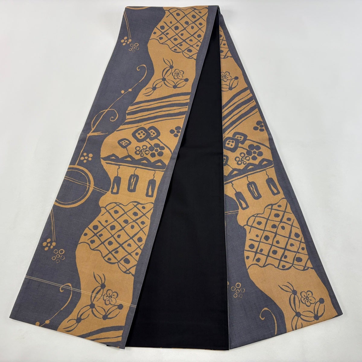 70%OFF 【美品】半幅帯 名品 格子 黄土色 正絹 K70