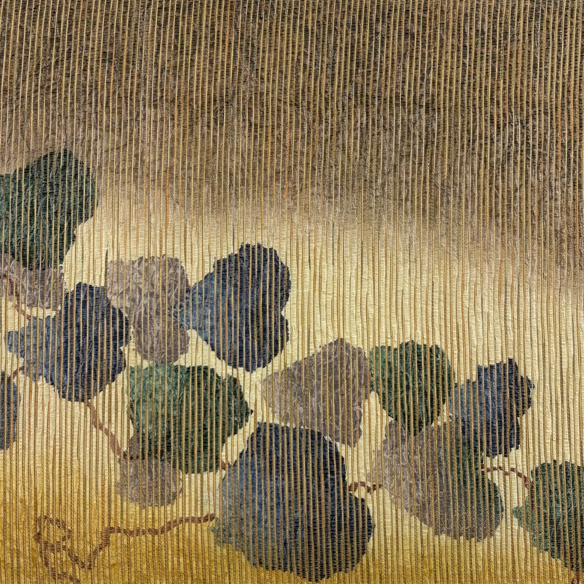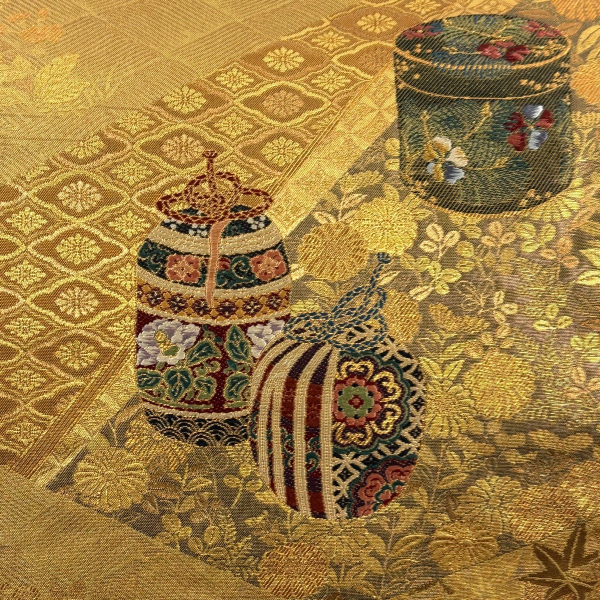 30%OFF 袋帯 秀品 御簾に萩文様 箔 吉祥唐織 黄土色 六通 正絹 K30