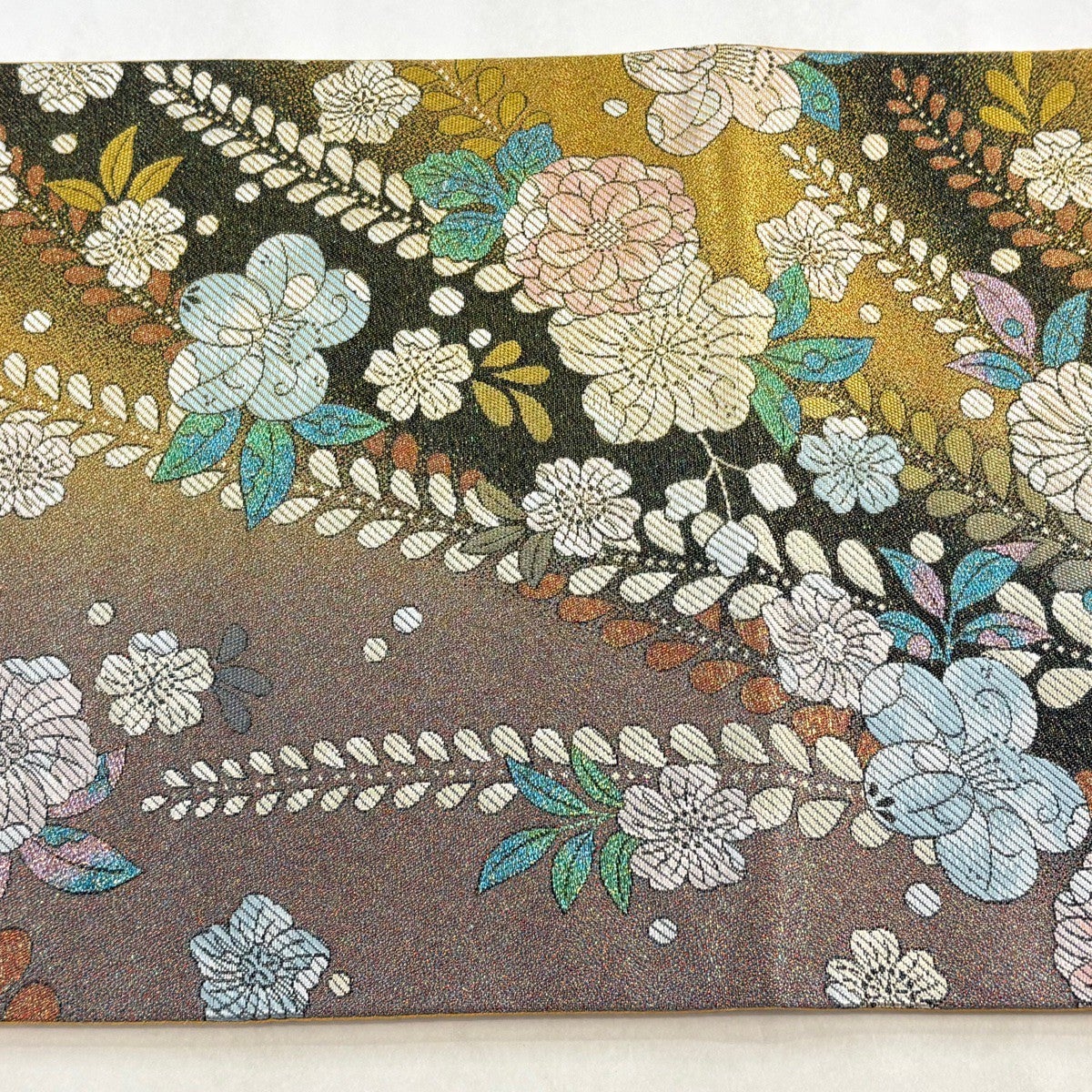 30%OFF 【美品】 名古屋帯 秀品 草花 金彩 金糸 黄土色 正絹 K30