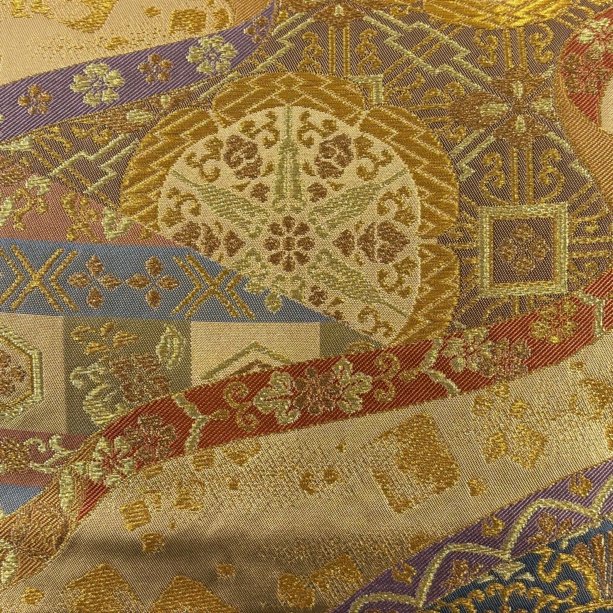 70%OFF 【美品】 袋帯 秀品 幾何学 箔 黄土色 六通 正絹 K70