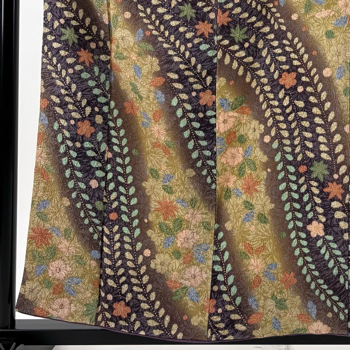 50%OFF 反物 名品 付下げ 菊 草花 ぼかし 縮緬 黄土色 正絹 K50