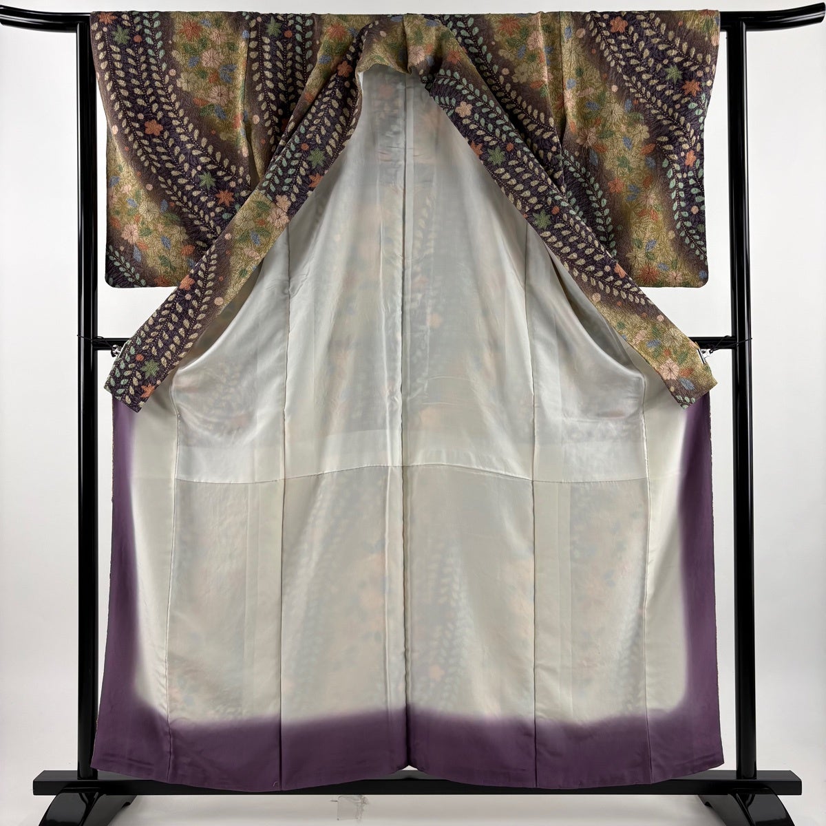 振袖 身丈167cm 裄丈68.5cm L 袷 地紋 黄土色 正絹 名品 一つ紋