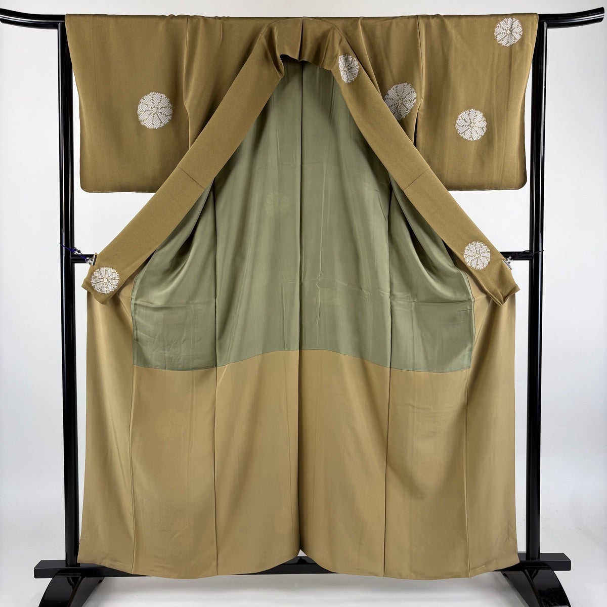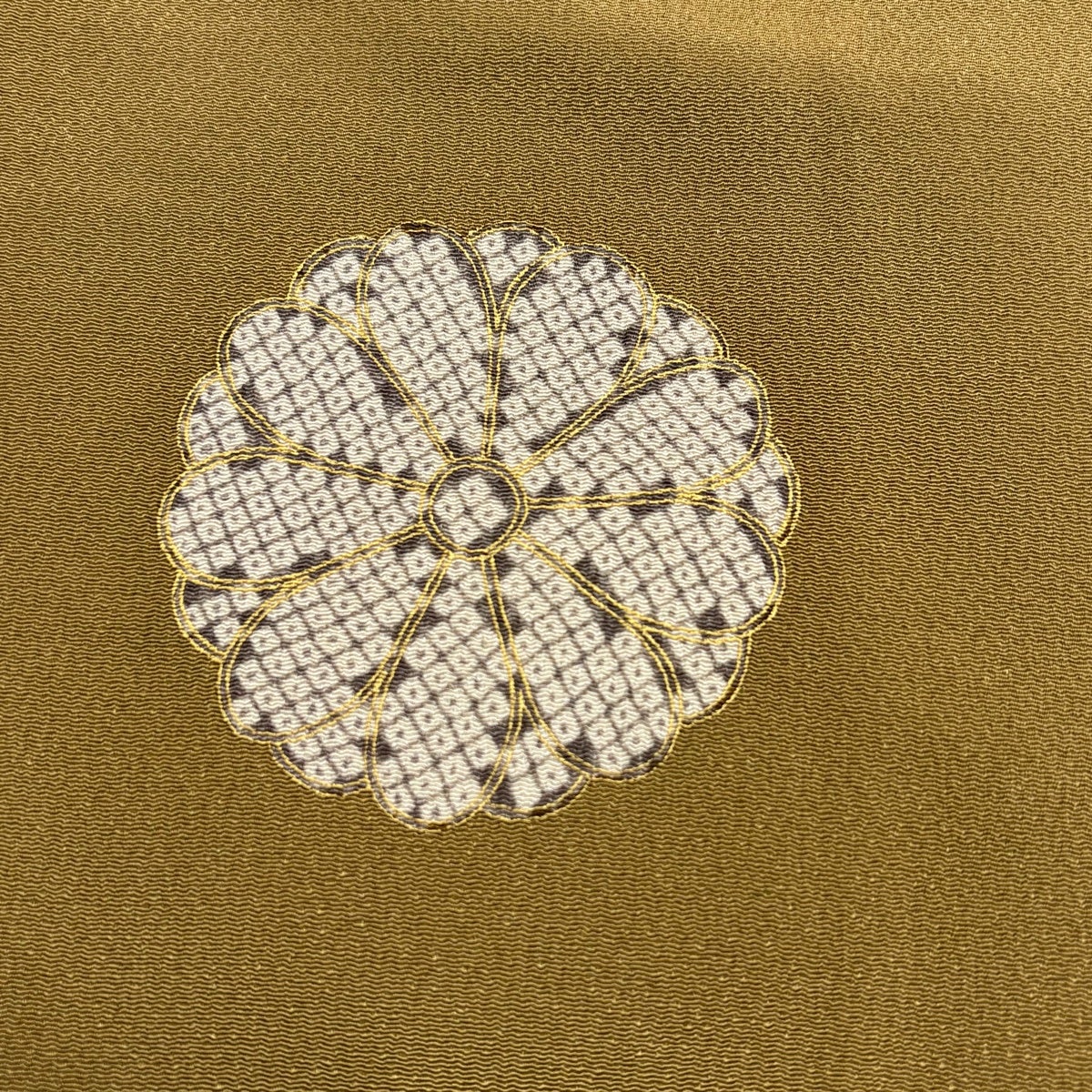 振袖 身丈166cm 裄丈66.5cm M 袷 雪輪 菊 金通し 刺繍 黄土色 正絹 名品