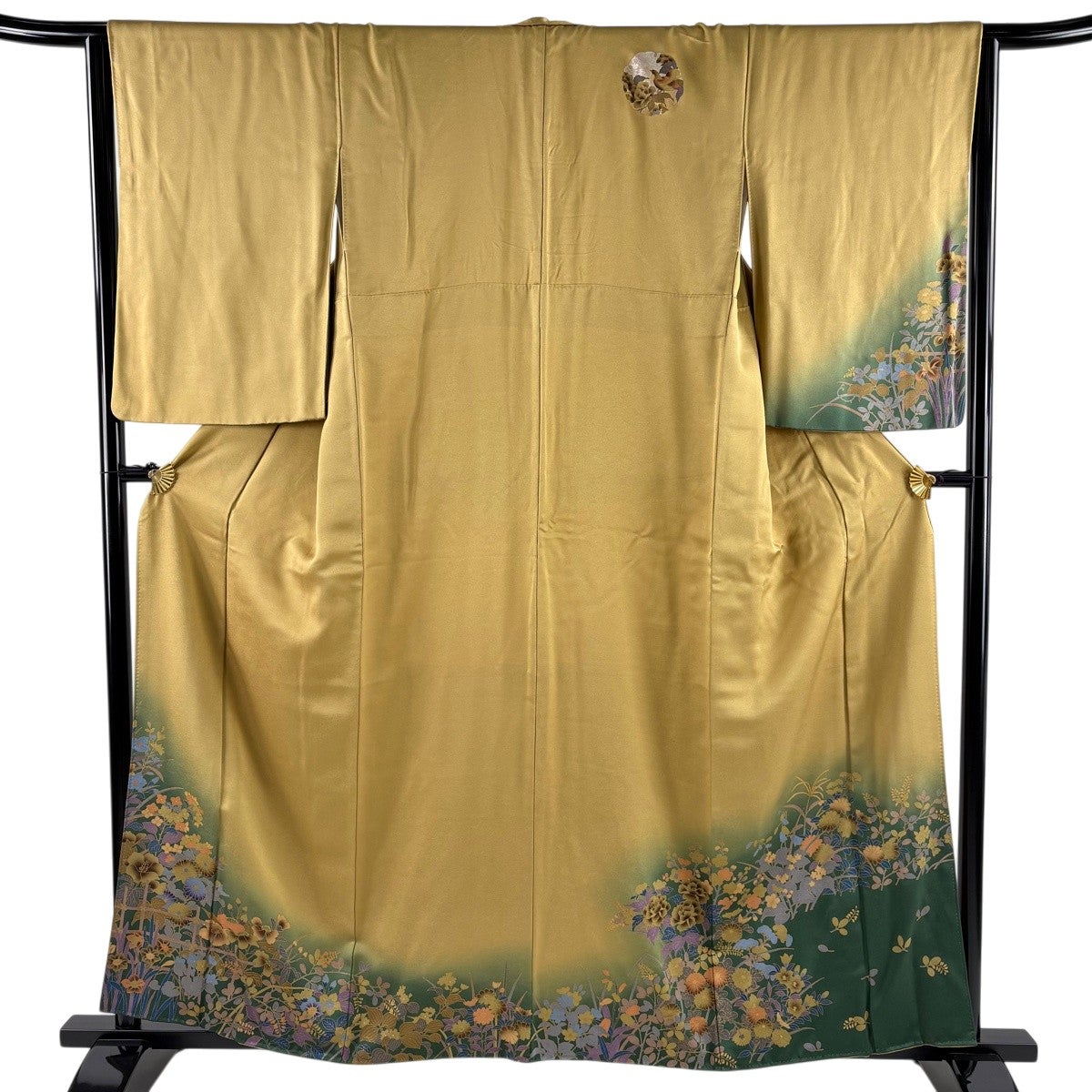 訪問着 身丈156cm 裄丈63cm S 袷 秋草 霞 金彩 ぼかし 黄土色 正絹 秀品