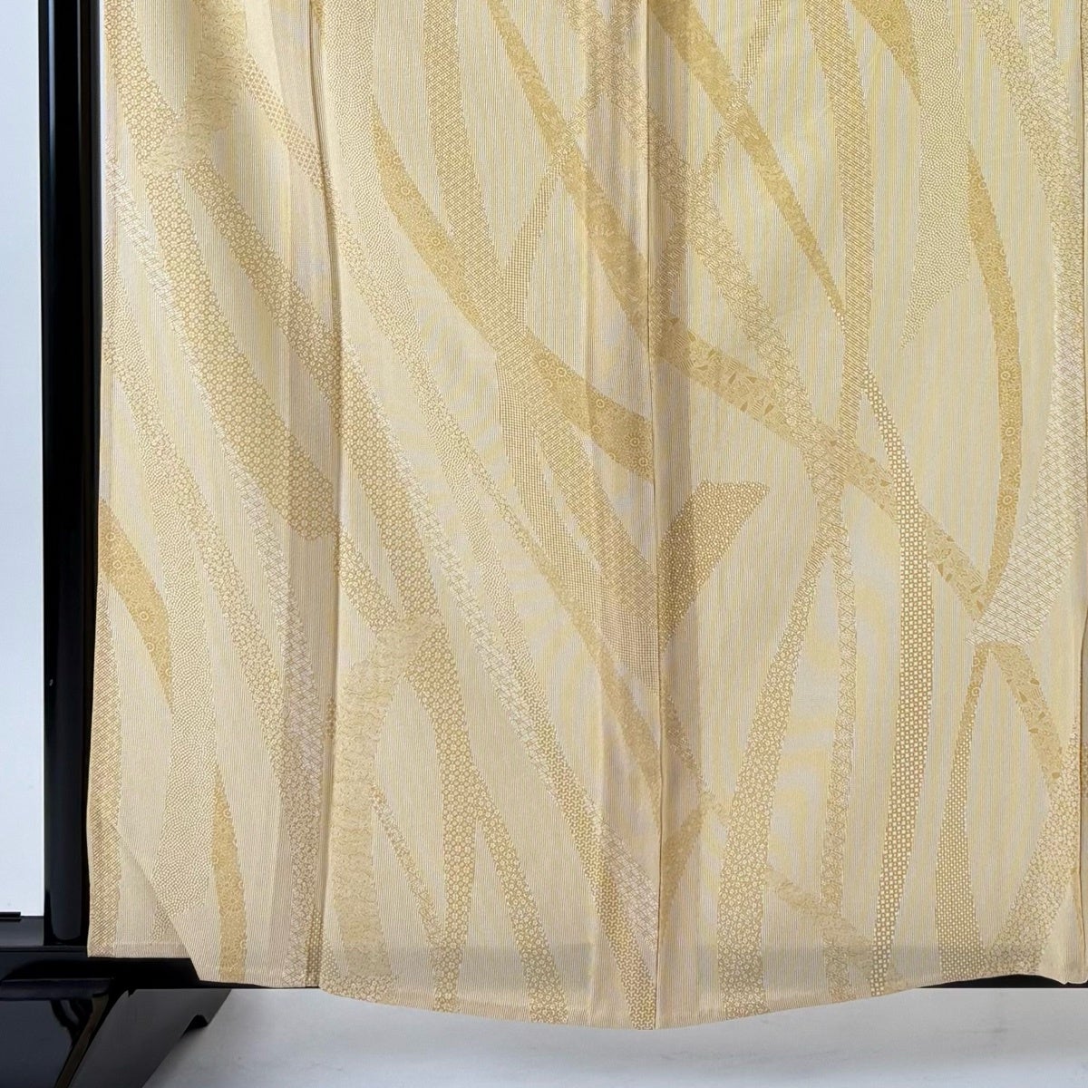 【美品】 名古屋帯 秀品 夏帯 松葉仕立て トンネル仕立て 八寸名古屋帯 幾何学模様 黄土色 正絹