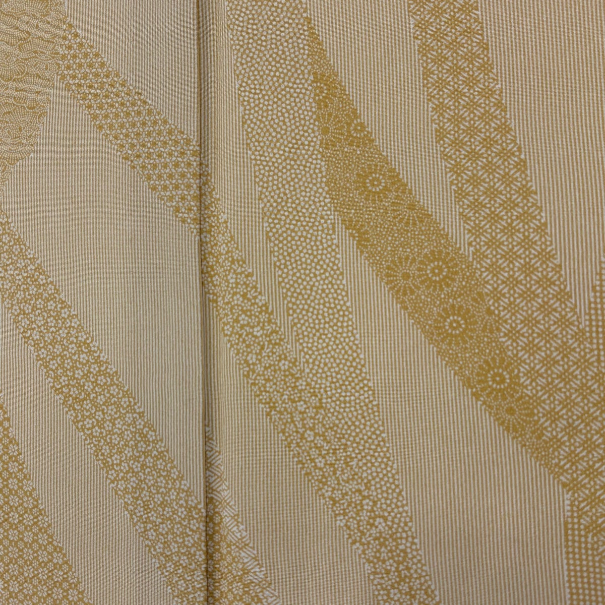 【美品】 紬 身丈157cm 裄丈64cm M 袷 縦縞 幾何学模様 黄土色 正絹 秀品