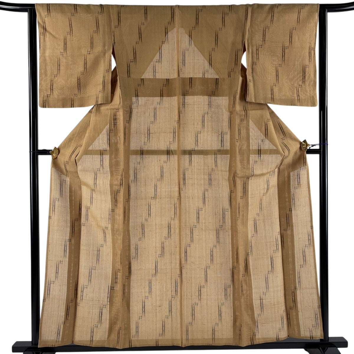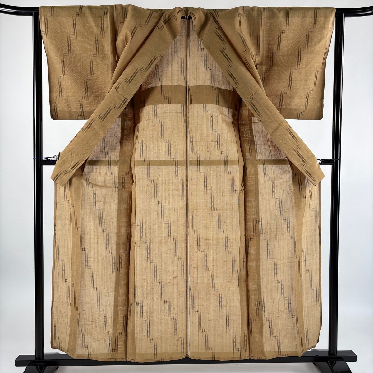 【美品】 紬 身丈158.5cm 裄丈62cm S 薄物 夏紬 井桁絣 十字絣 黄土色 正絹 名品