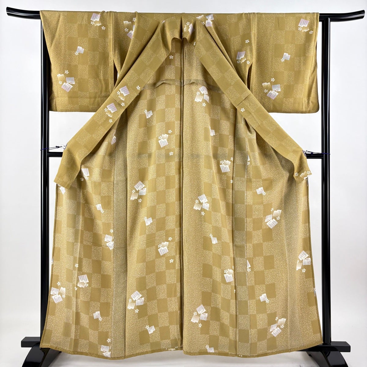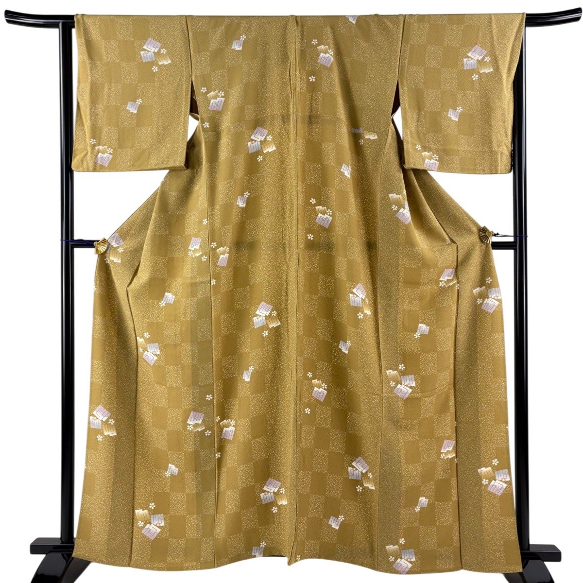 訪問着 身丈168cm 裄丈67.5cm M 袷 扇面 短冊 金銀彩 染め分け 黄土色 正絹 秀品