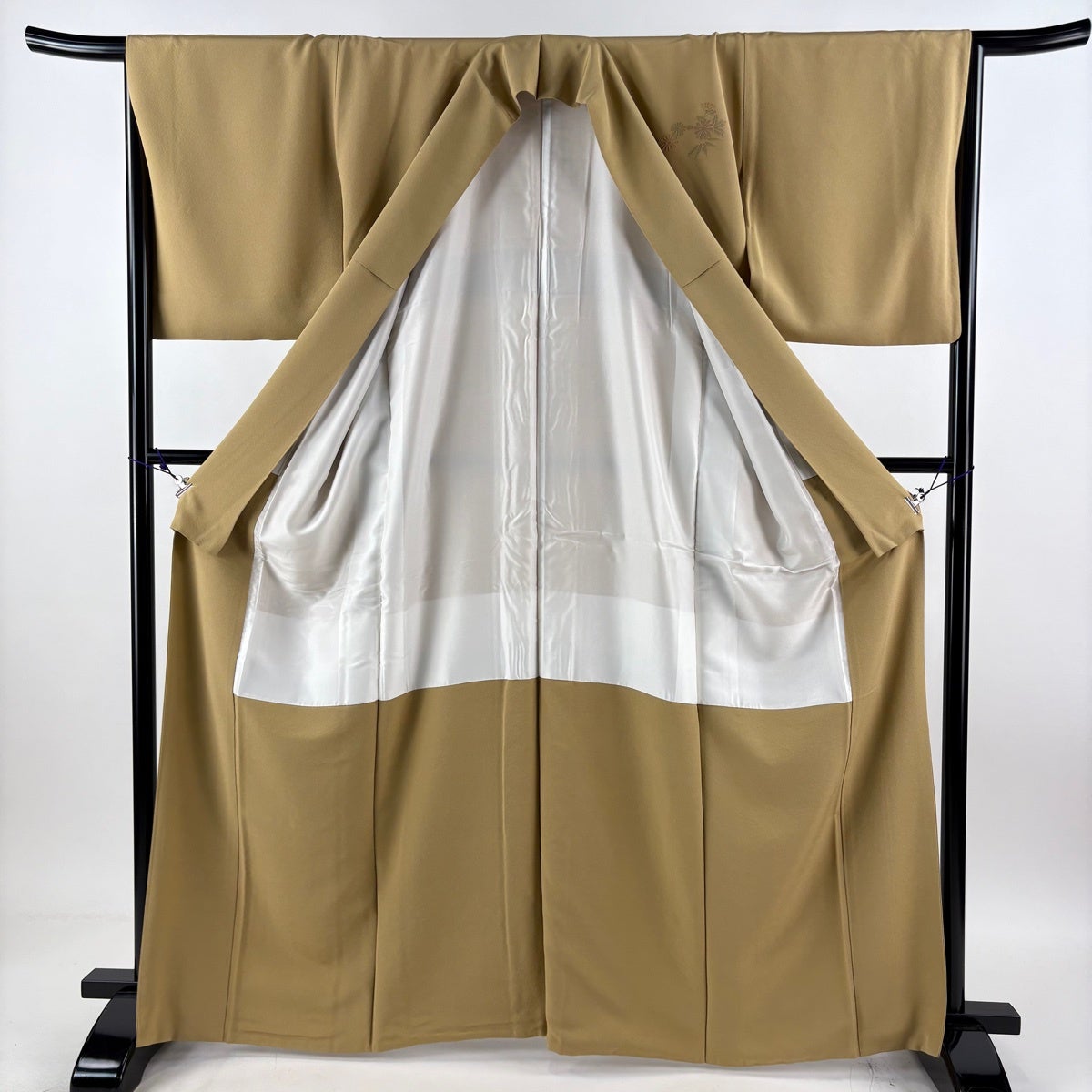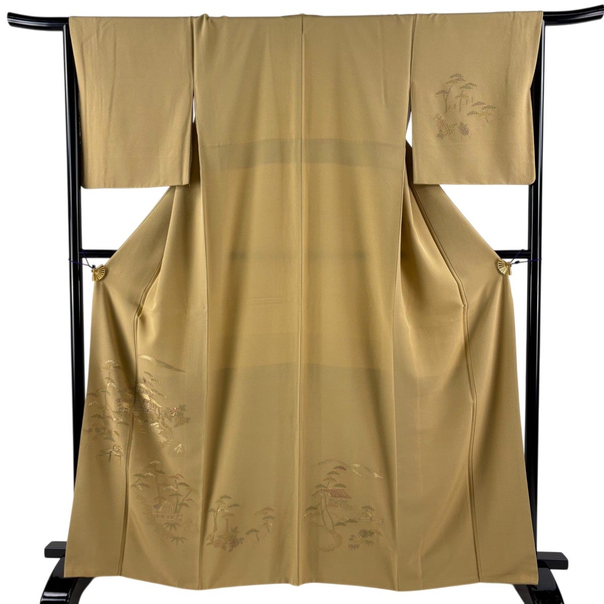 付下げ 身丈159cm 裄丈65cm M 袷 組紐 琴 刺繍 ぼかし 黄土色 正絹 秀品 一つ紋
