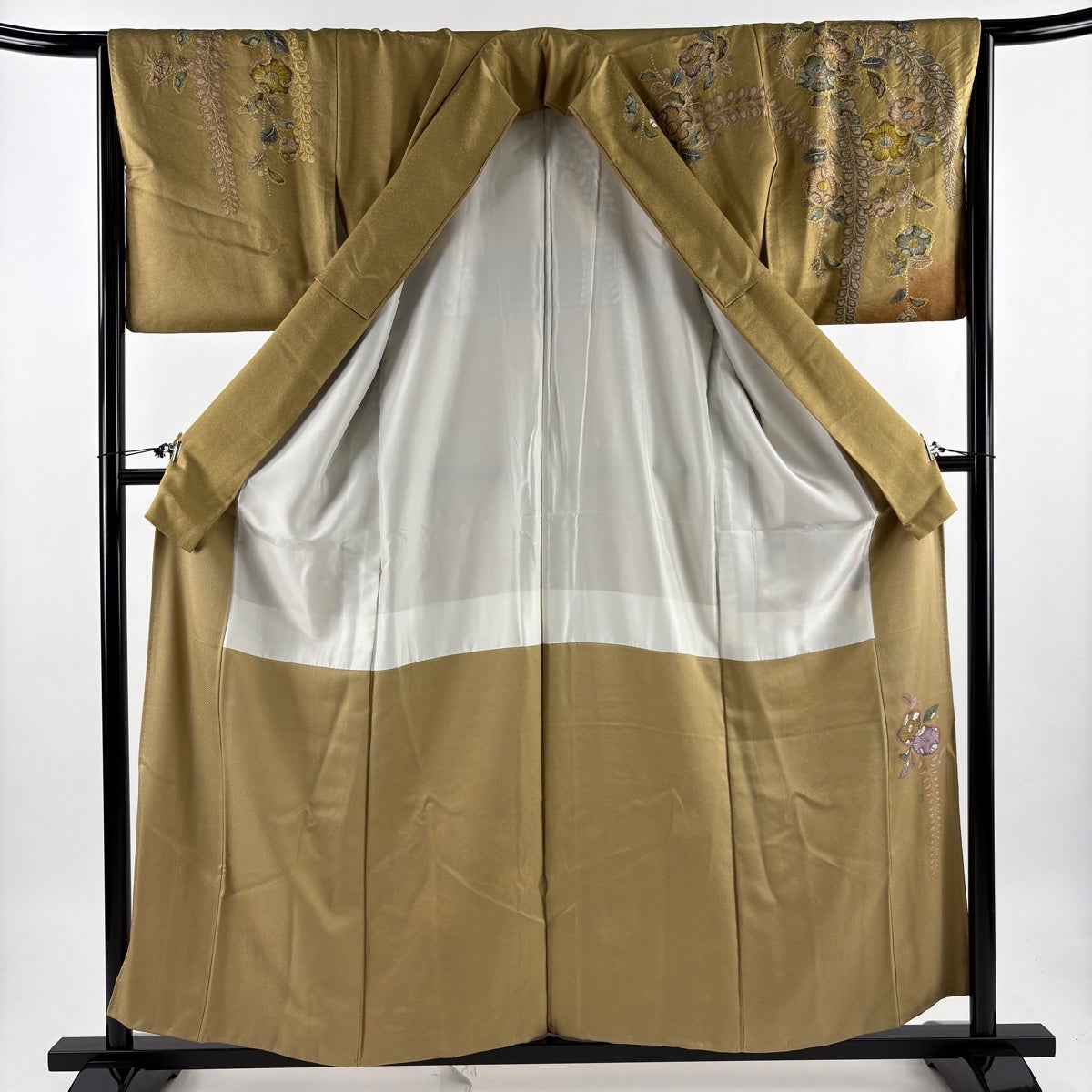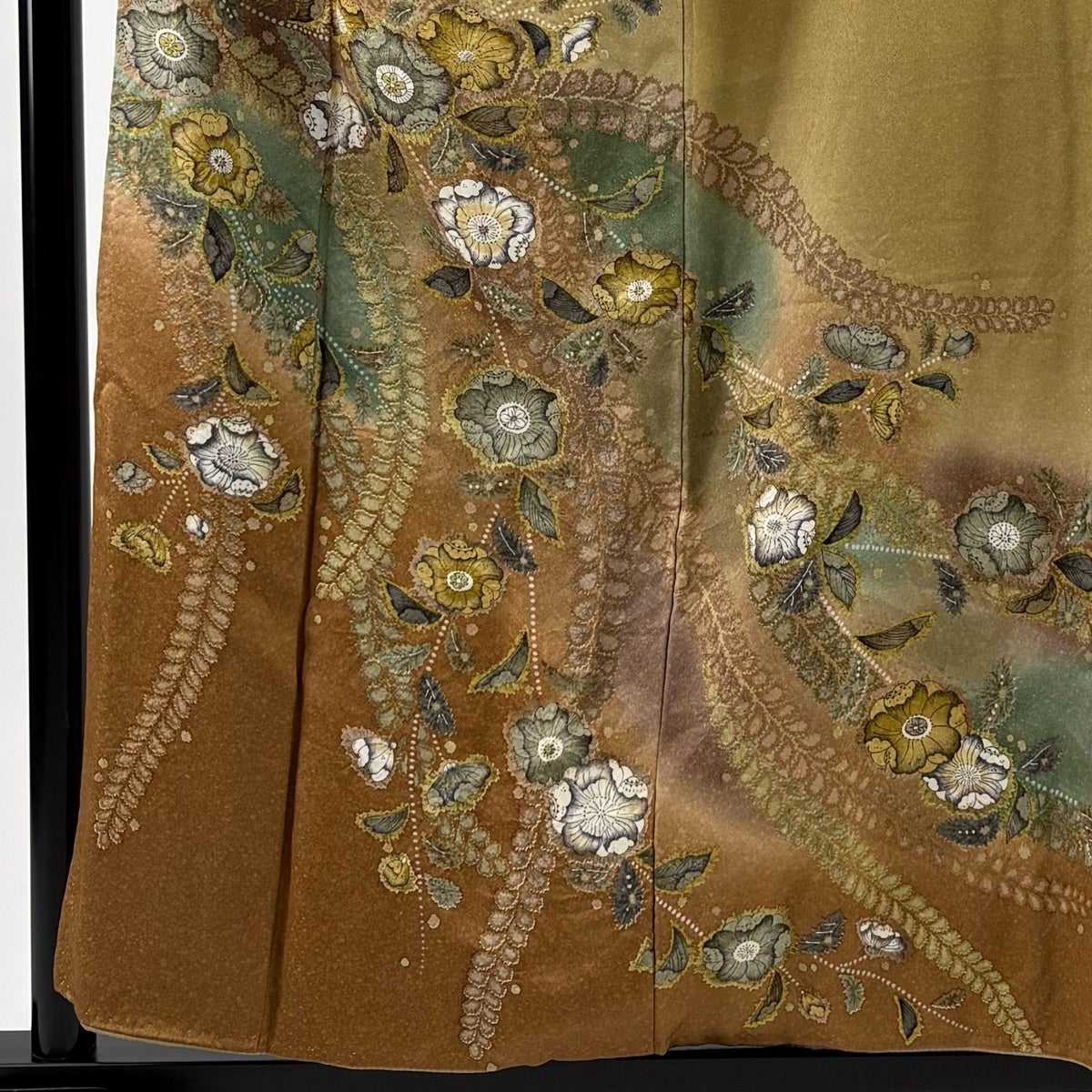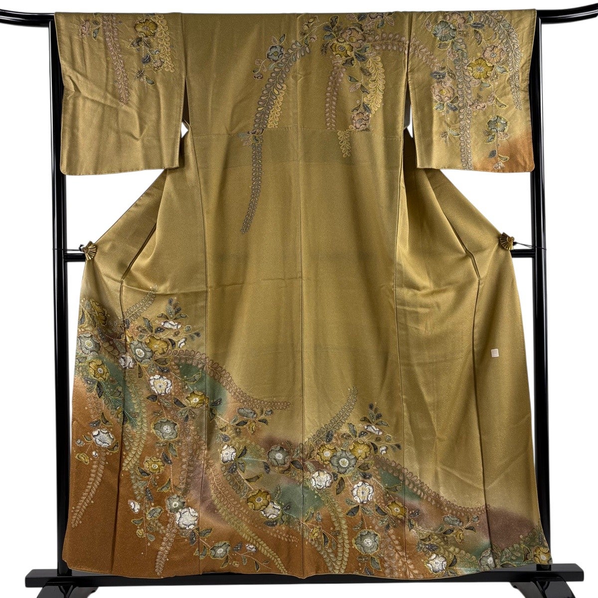 【美品】 振袖 身丈166cm 裄丈70cm L 袷 やまと 牡丹 流水 ぼかし そ染め分け 黄土色 正絹 秀品