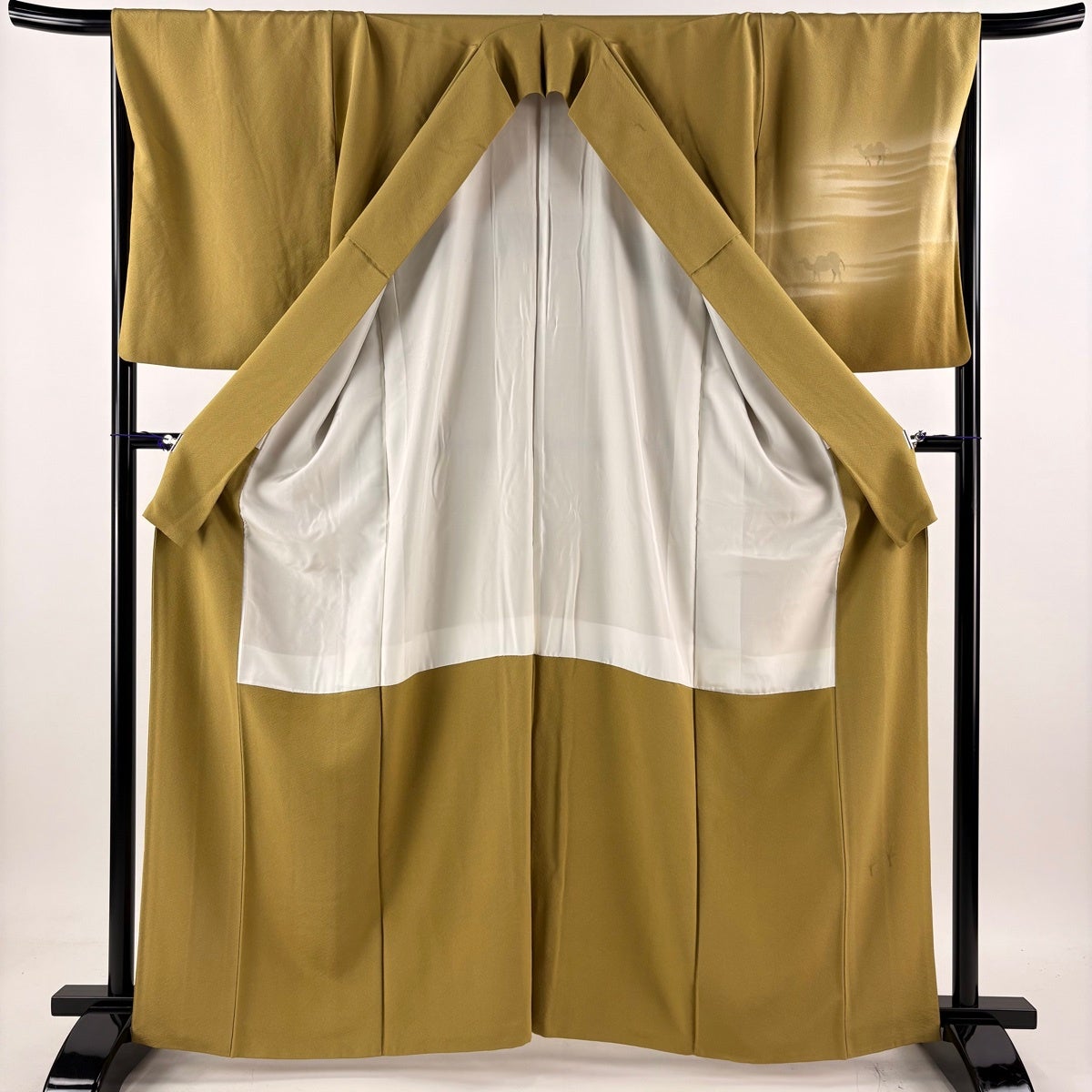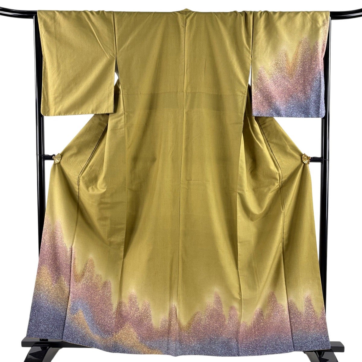 【在庫一掃】 道行 身丈90cm 裄丈67cm M 和装コート 角衿 霞 ぼかし ビロード風 黄土色 正絹 秀品