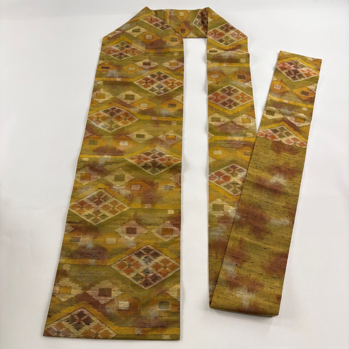 30%OFF 【美品】帯締め 優品 カジュアル 幾何学模様 黄緑色 正絹 和装小物 K30