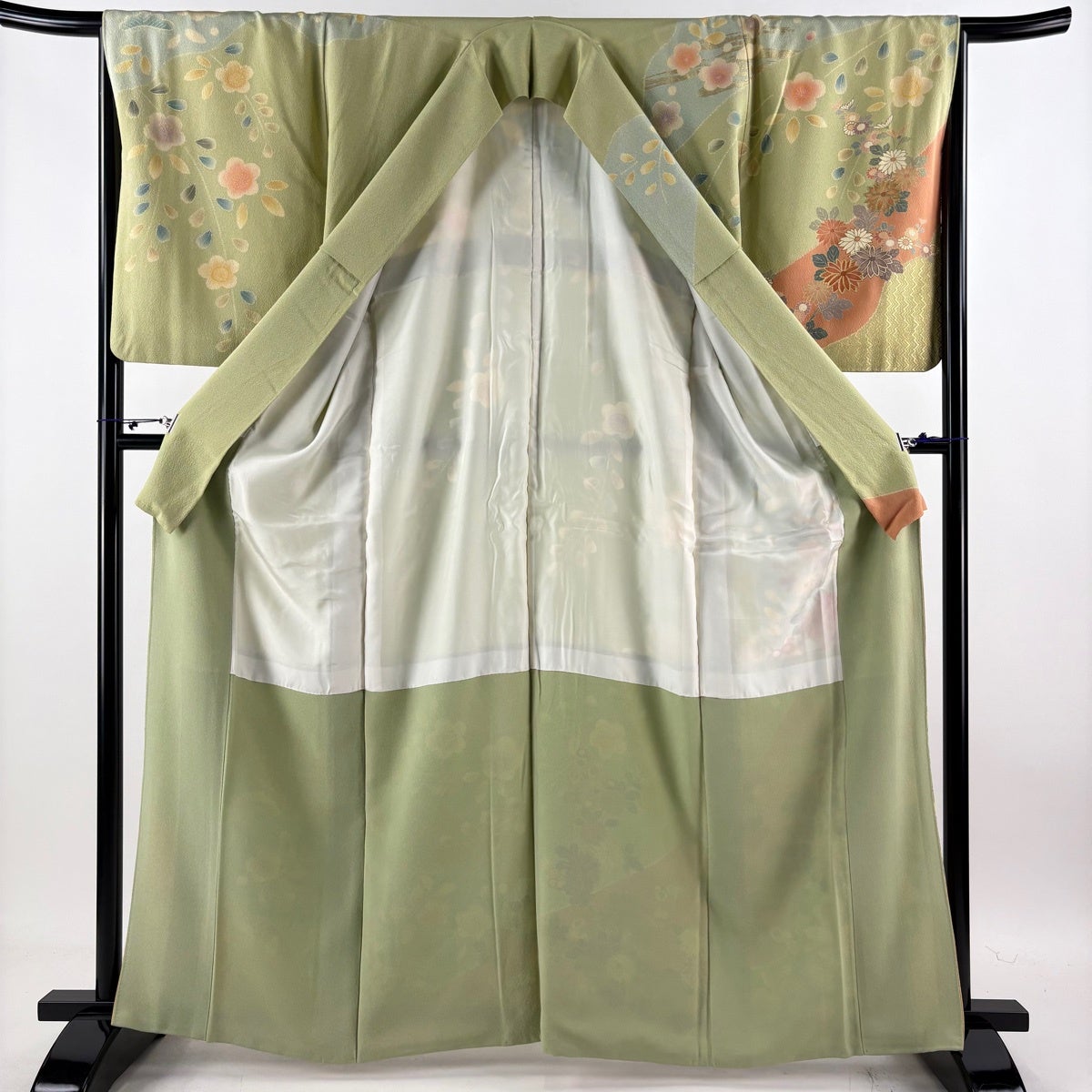 30%OFF 振袖 身丈168cm 裄丈70cm L 袷 ふき仕立て 桜 花びら 金彩 ぼかし 黄緑色 正絹 秀品 K30