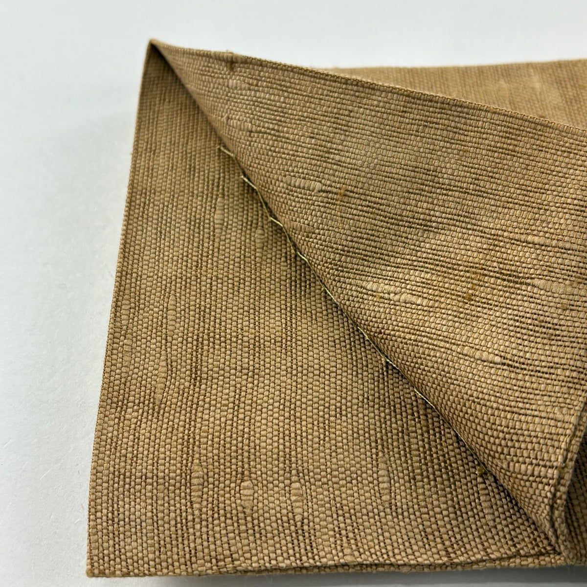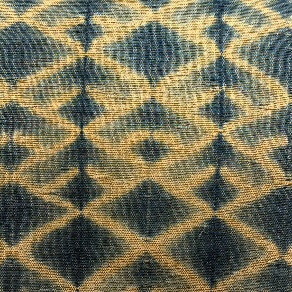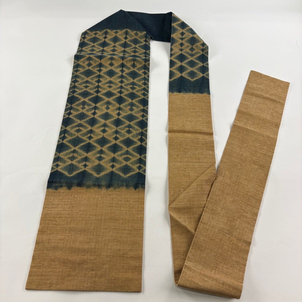 袋帯 名品 こぎん織り 菱 幾何学 黄土色 六通 正絹