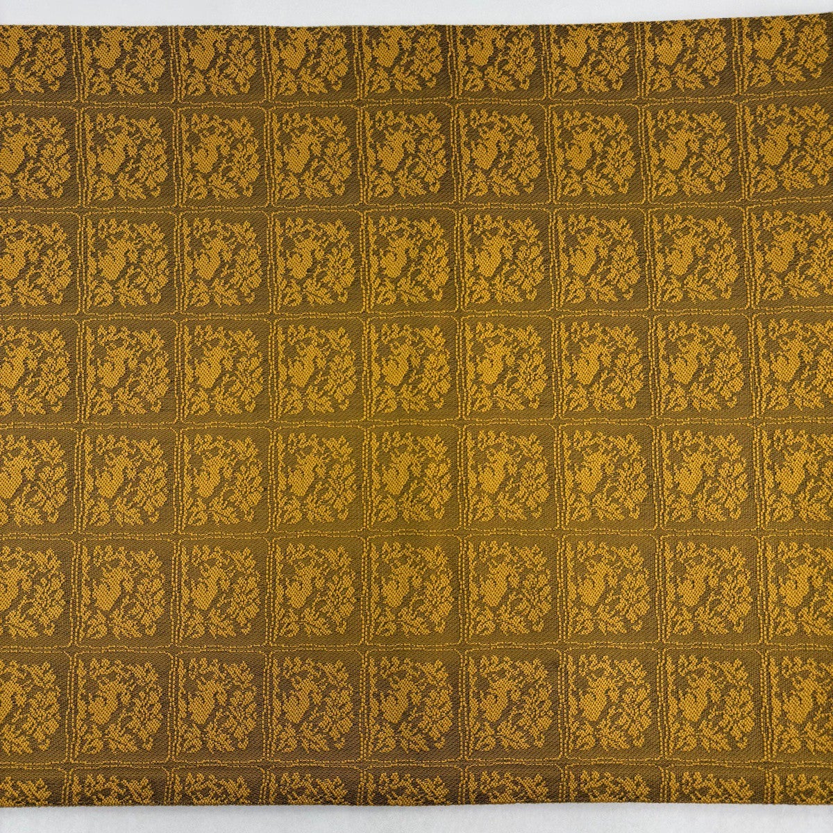 袋帯 秀品 華文 鳥 金糸 黄土色 六通 正絹