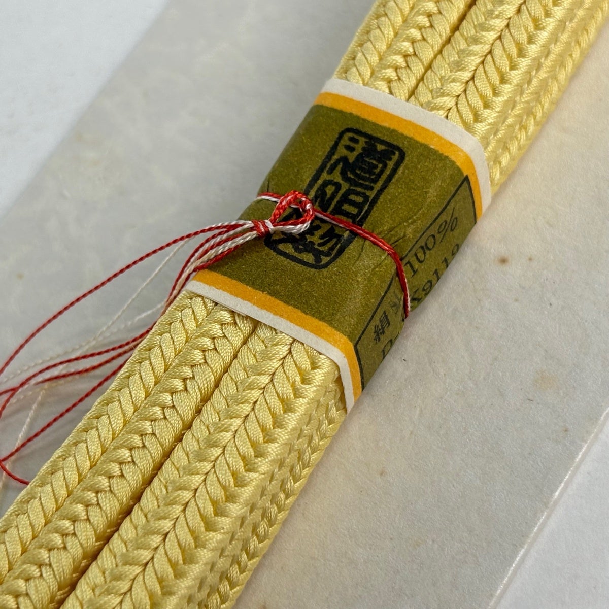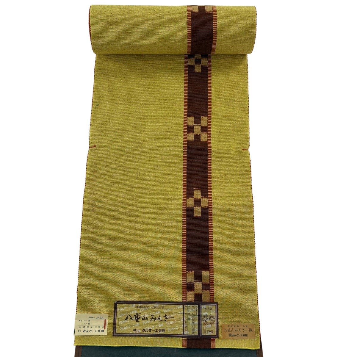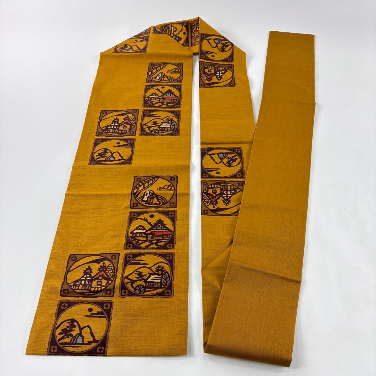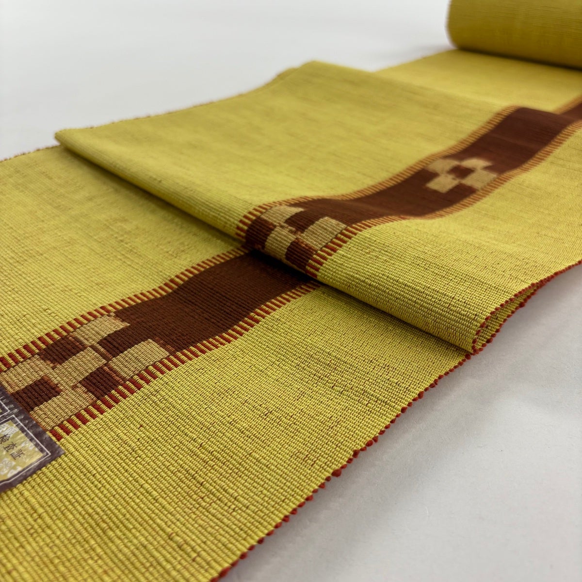 名古屋帯 名品 八寸名古屋帯 松葉仕立て 幾何学 黄土色 正絹